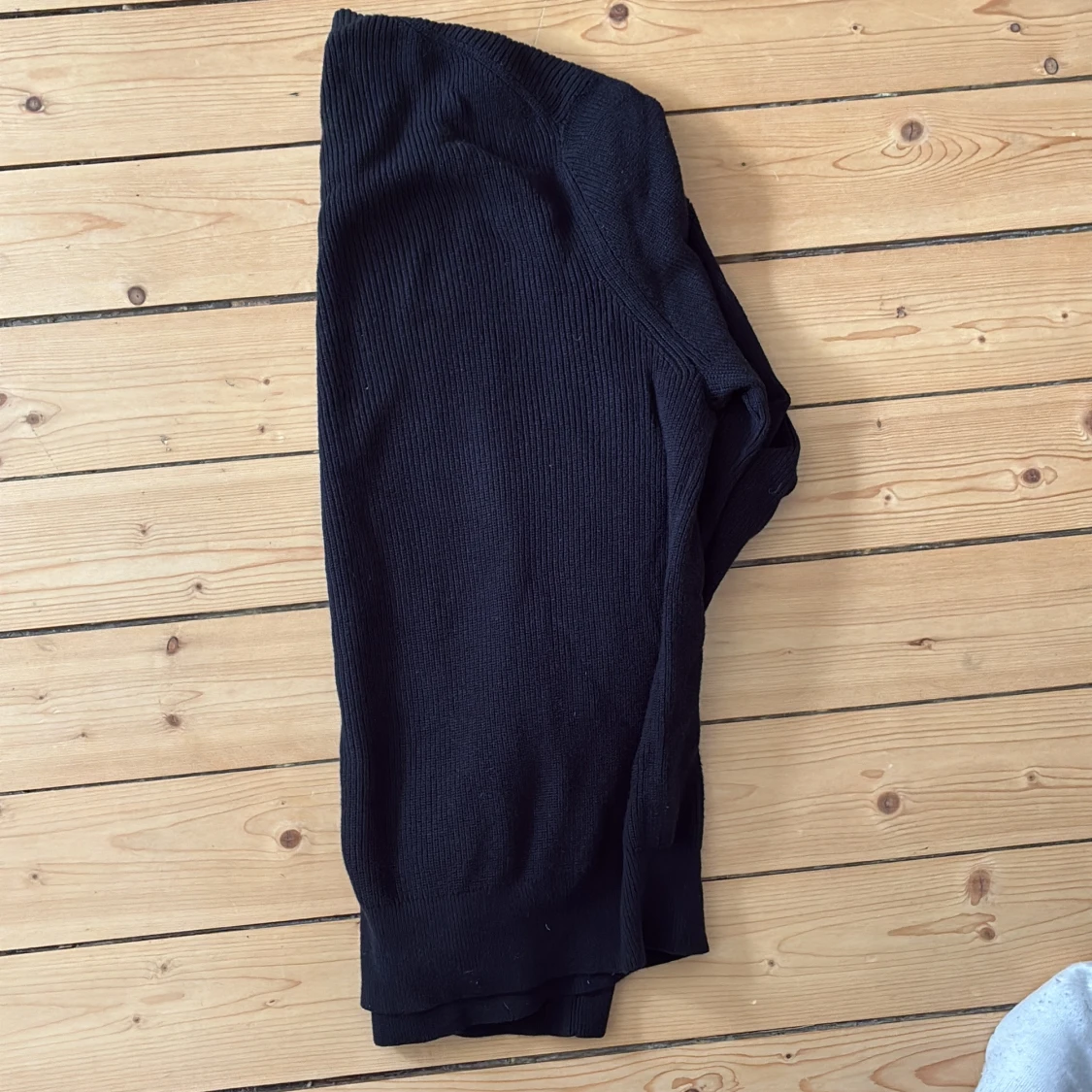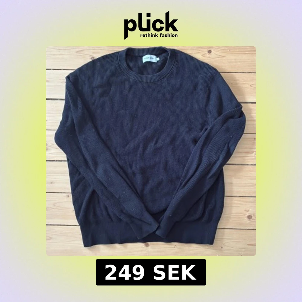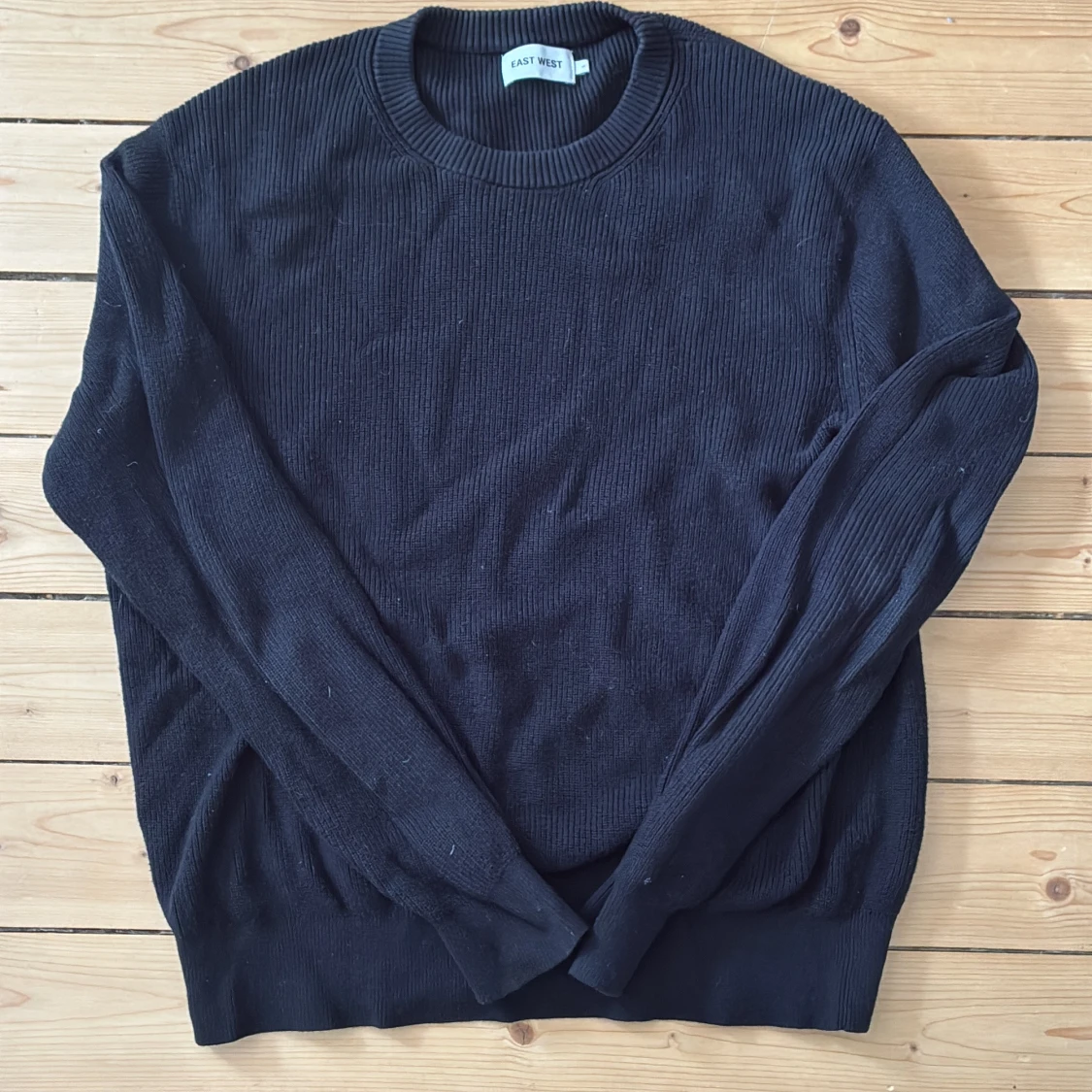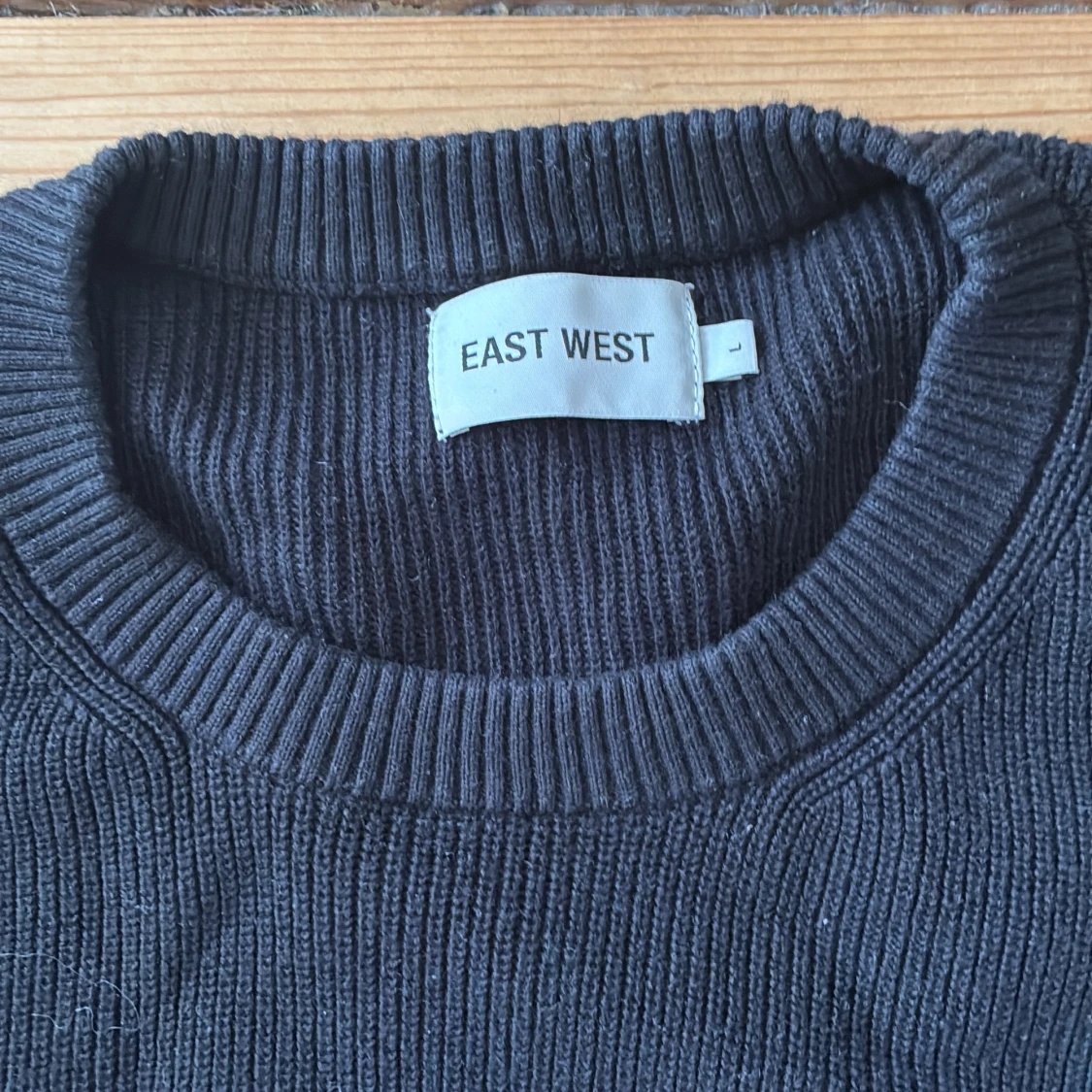 Säljer en stilren svart stickad tröja från East West. Tröjan har en rund halsringning och långa ärmar, perfekt för kyligare dagar. Den ribbade strukturen ger en klassisk look. Det är storlek L men sitter som M. För mer information kom PM.
