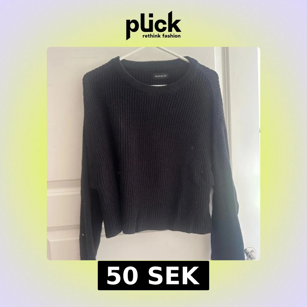 En svart stickad tröja från Even&Odd med grov ribbstickning och rund hals.