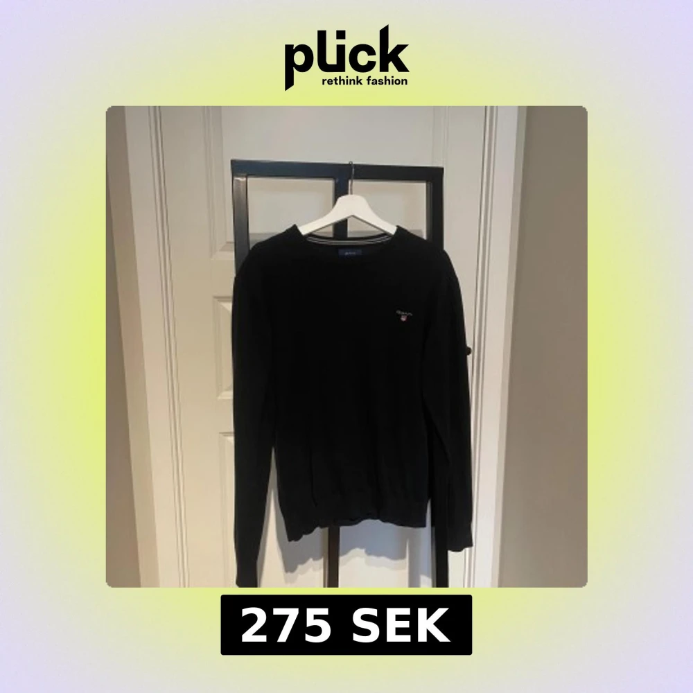 Klassisk svart stickad tröja från Gant med rund halsringning och diskret broderad logga på bröstet. Tröjan har ribbade muddar och är långärmad, perfekt för lager-på-lager-stil under kyligare dagar.