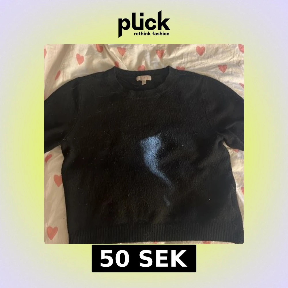 En svart stickad tröja från H&M i storlek L. Tröjan har rund halsringning, ribbade muddar och är långärmad. Perfekt för lager-på-lager och funkar till många olika stilar. Enkel och klassisk design som är lätt att matcha. Liten i strl passar S-M