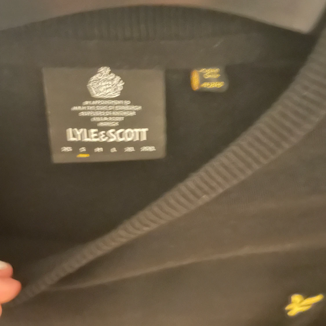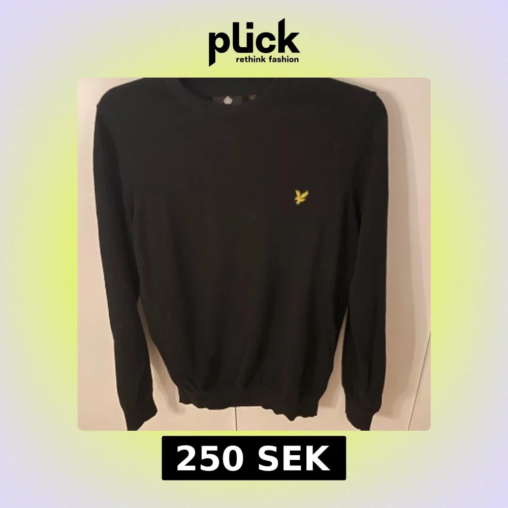Svart stickad tröja från Lyle & Scott med klassisk rund hals och gul broderad logga på bröstet. Tröjan har långa ärmar och ribbade muddar vid ärmslut och nederkant. Perfekt för dig som gillar stilrena och enkla plagg med snygga detaljer.