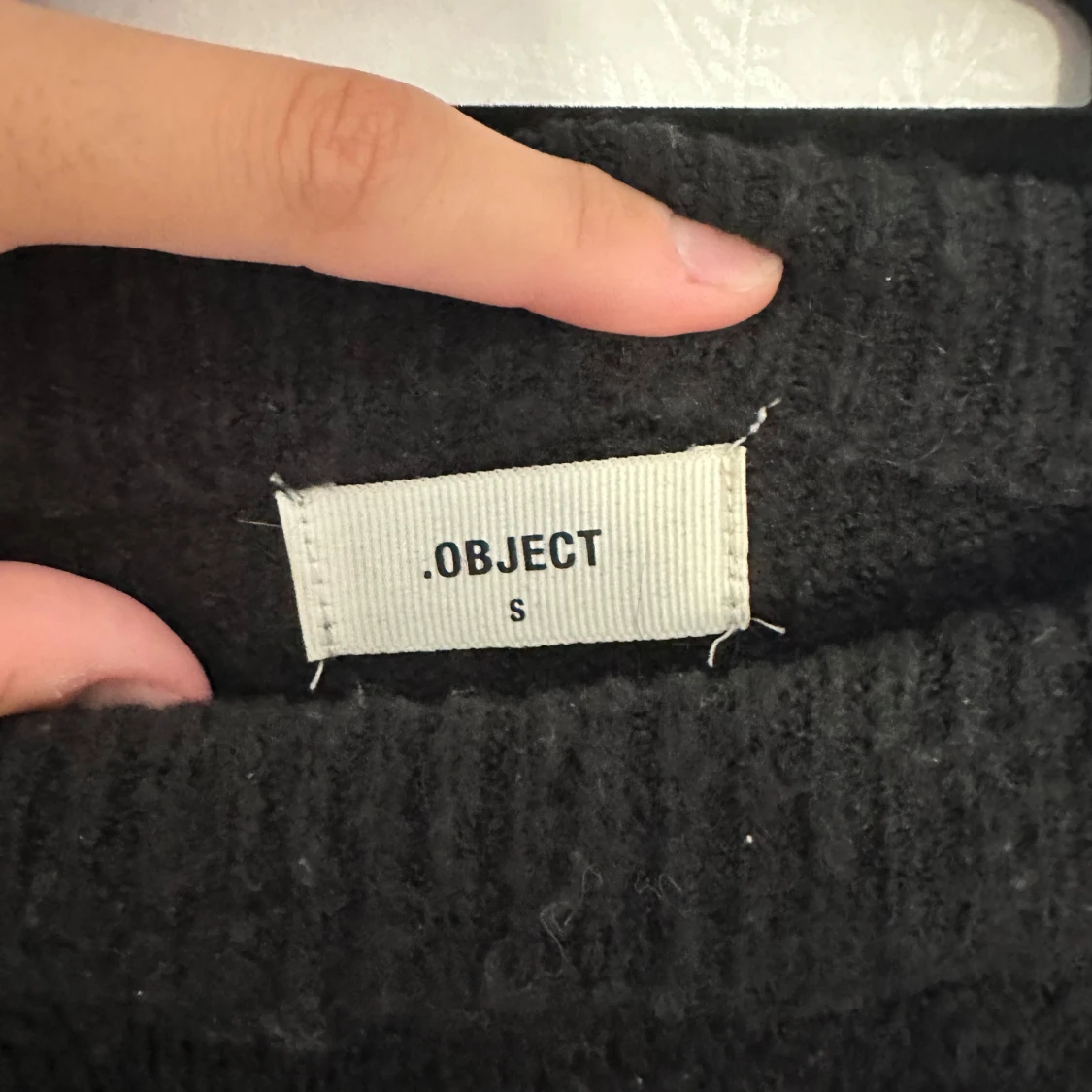 En svart stickad tröja från Object i storlek S. Tröjan har en klassisk rund halsringning och långa ärmar. Perfekt för lager-på-lager och enkel att matcha med jeans eller kjol.
