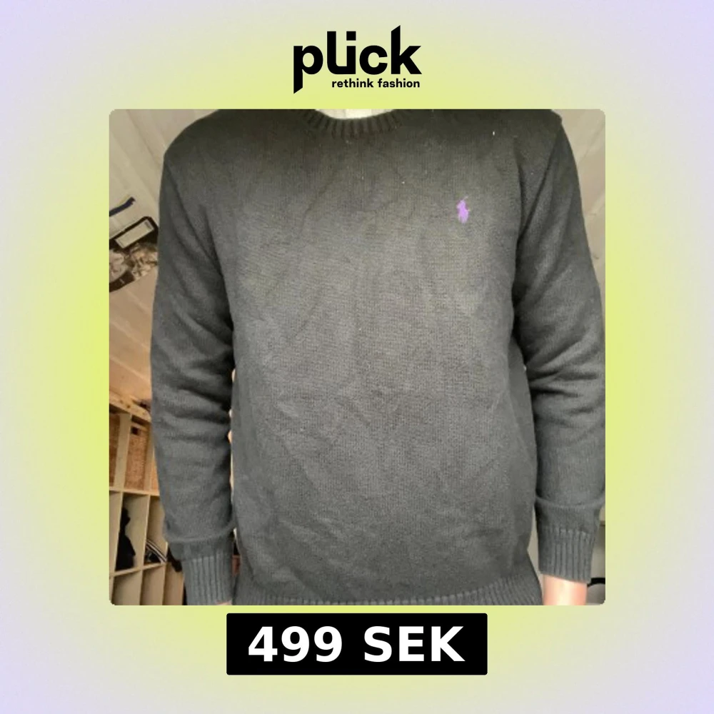 Svart stickad tröja från Polo Ralph Lauren med lila broderad logga på bröstet. Klassisk rund halsringning och ribbade muddar vid ärmslut och nederkant. Perfekt för dig som gillar stilren och enkel design. Egentligen XL men sitter som M. Nypris 2399kr