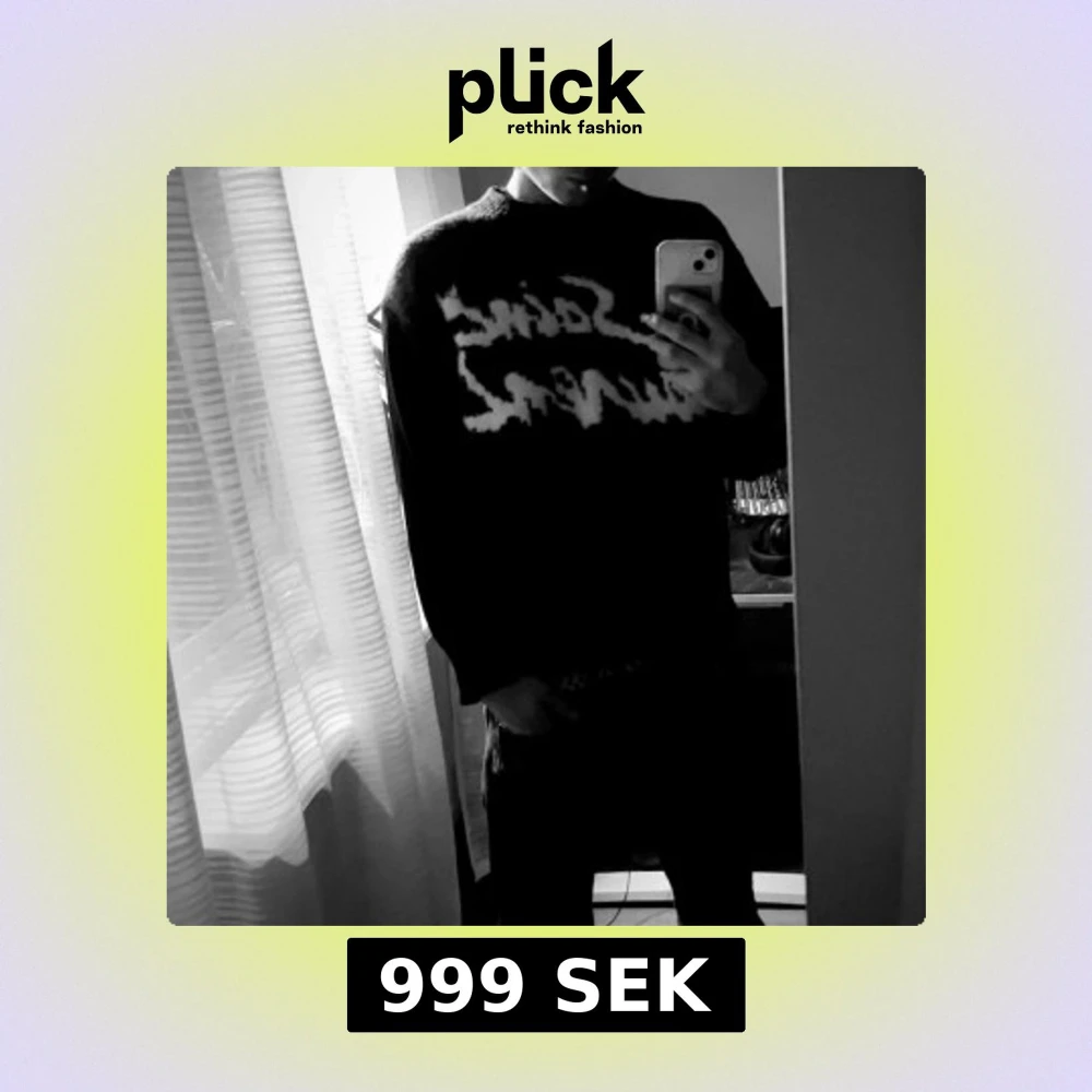Passar S/M (tröjan är i storlek M och har sjölc Storlek S och passar mig utmärkt) Säljer en svart stickad tröja från Saint Laurent med vit, stor logga framtill. Tröjan har lång ärm och en avslappnad passform. Perfekt för dig som gillar streetwear och vill ha något unikt i garderoben.