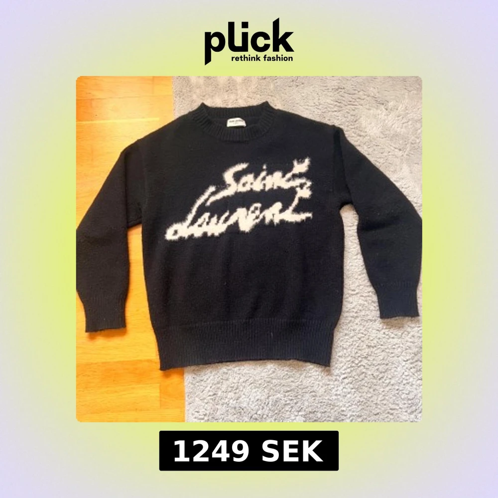 Säljer en svart stickad tröja från Saint Laurent med vit text på bröstet. Tröjan har rund halsringning och ribbade muddar vid ärmslut och nederkant. Perfekt för dig som gillar exklusiva och stilrena plagg. Aldrig använt. Hör av dig vid minsta fundering!!