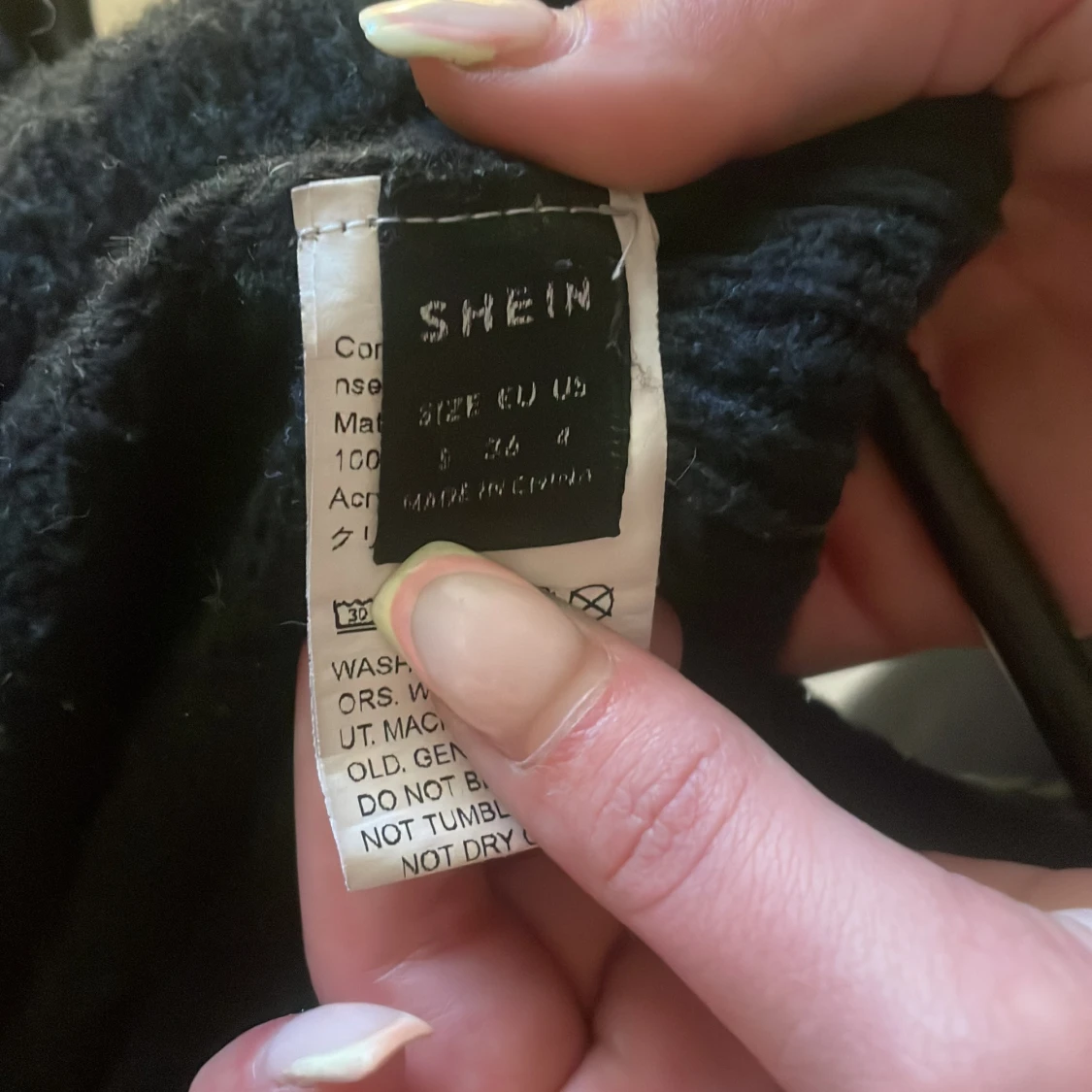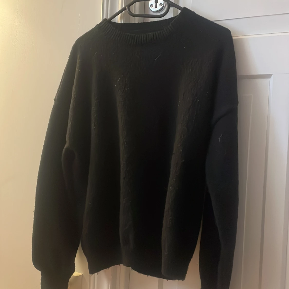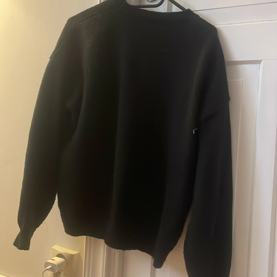 En svart stickad tröja, med lite puff ärmar, från SHEIN i str S, använd få gånger.