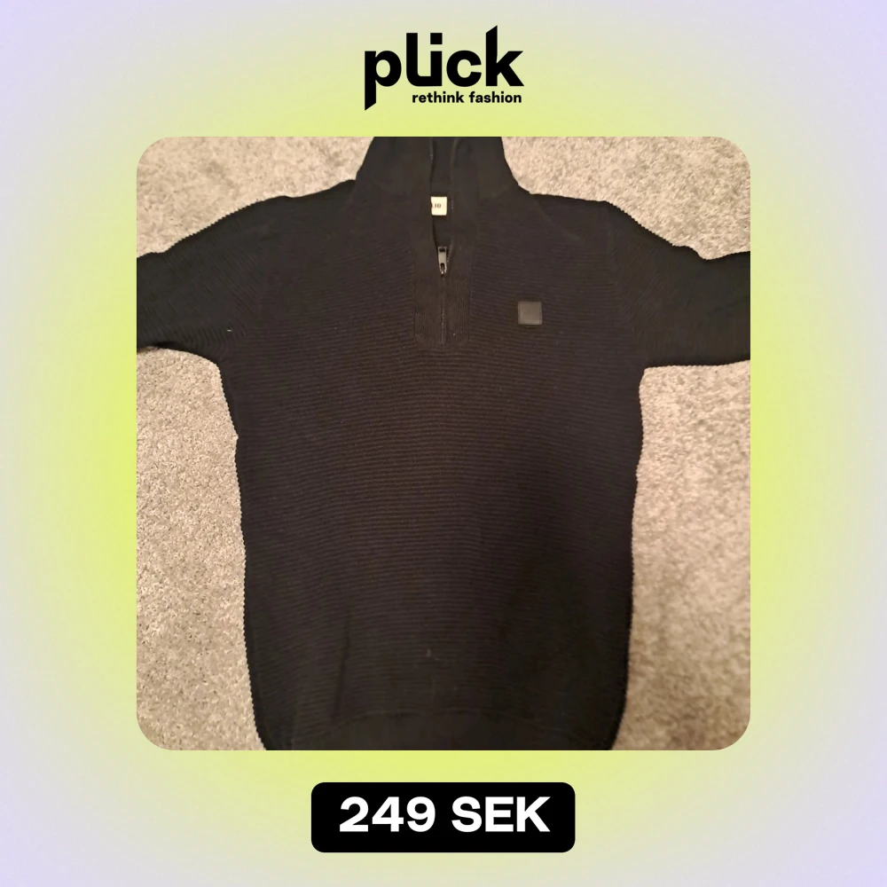 Säljer en snygg svart stickad tröja från !Solid. Den har en dragkedja framtill och en liten logotyp på bröstet. Perfekt för kyliga dagar och passar till både vardag och fest. Tröjan är i mycket bra skick och redo för en ny ägare!