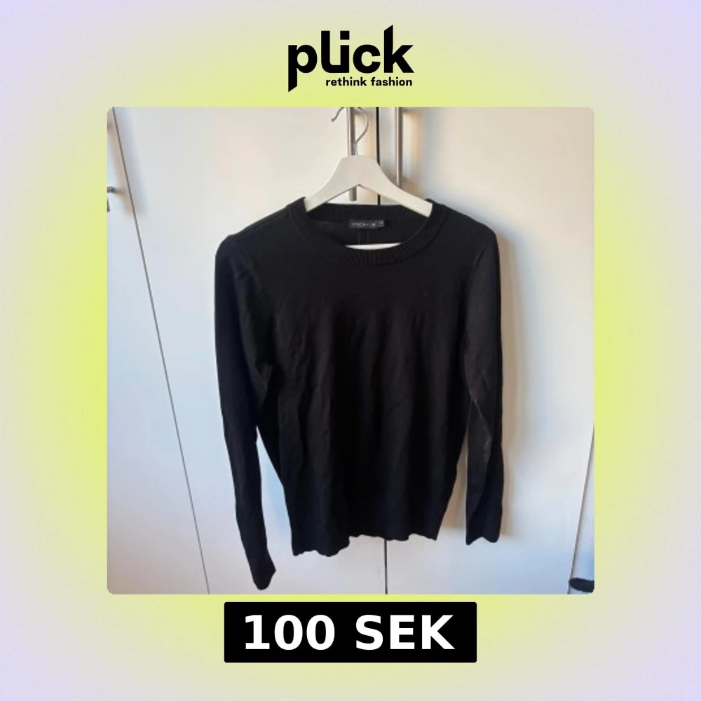 En svart, stilren stickad tröja från STOCKH LM i storlek M. Tröjan har rund halsringning och långa ärmar, perfekt för dig som gillar enkel och clean look. Materialet är mjukt och skönt, passar till många olika outfits.
