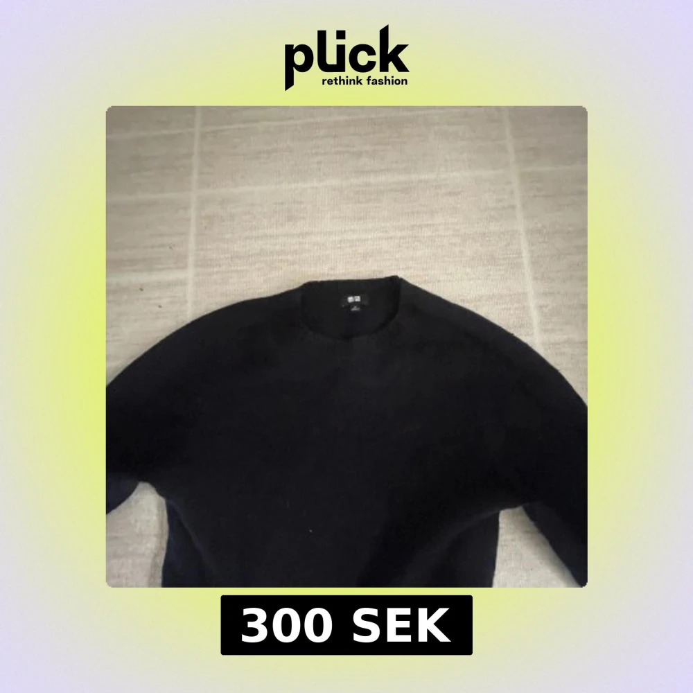 En klassisk mörk blå stickad tröja från Uniqlo. Tröjan har rund halsringning och långa ärmar. Perfekt basplagg som funkar till många olika stilar. Den är i storlek S men har krympt lite i tvätten.