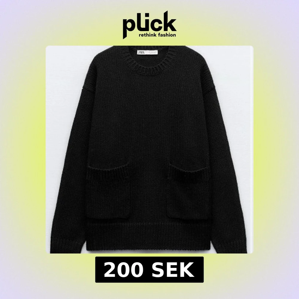 Säljer en stilren svart stickad tröja från Zara. Tröjan har långa ärmar och två fickor på framsidan, finns ej att köpa längre💕