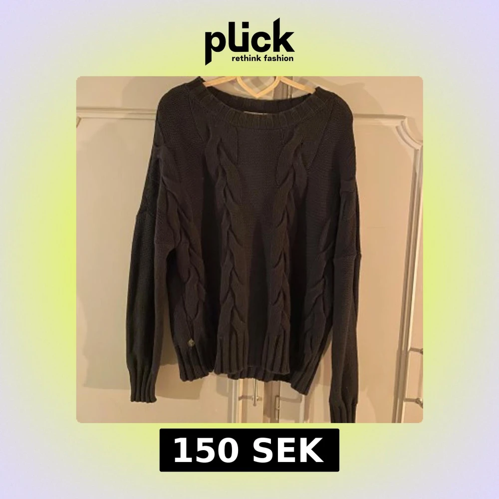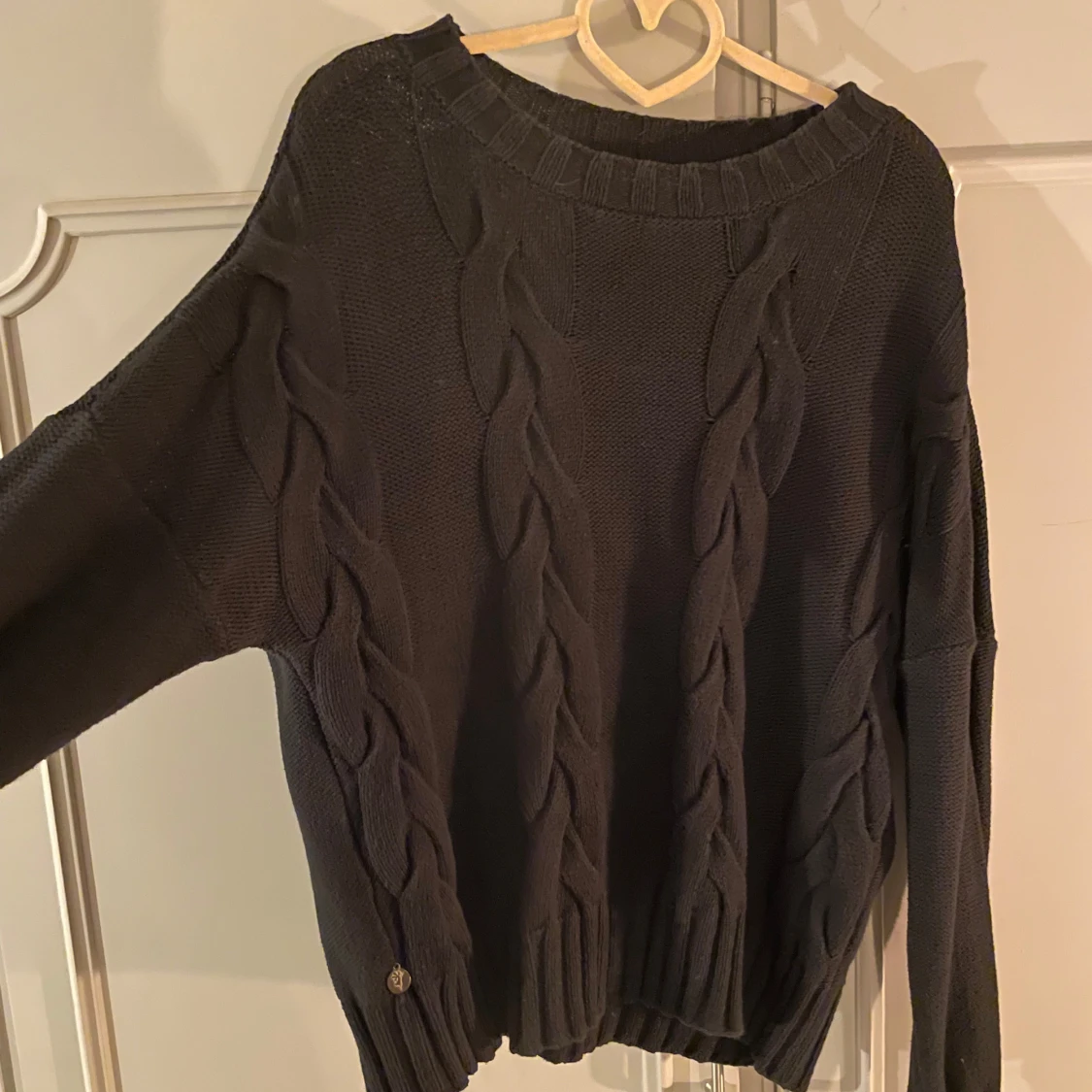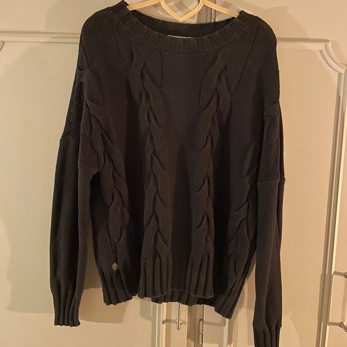 Svart stickad tröja med flätmönster