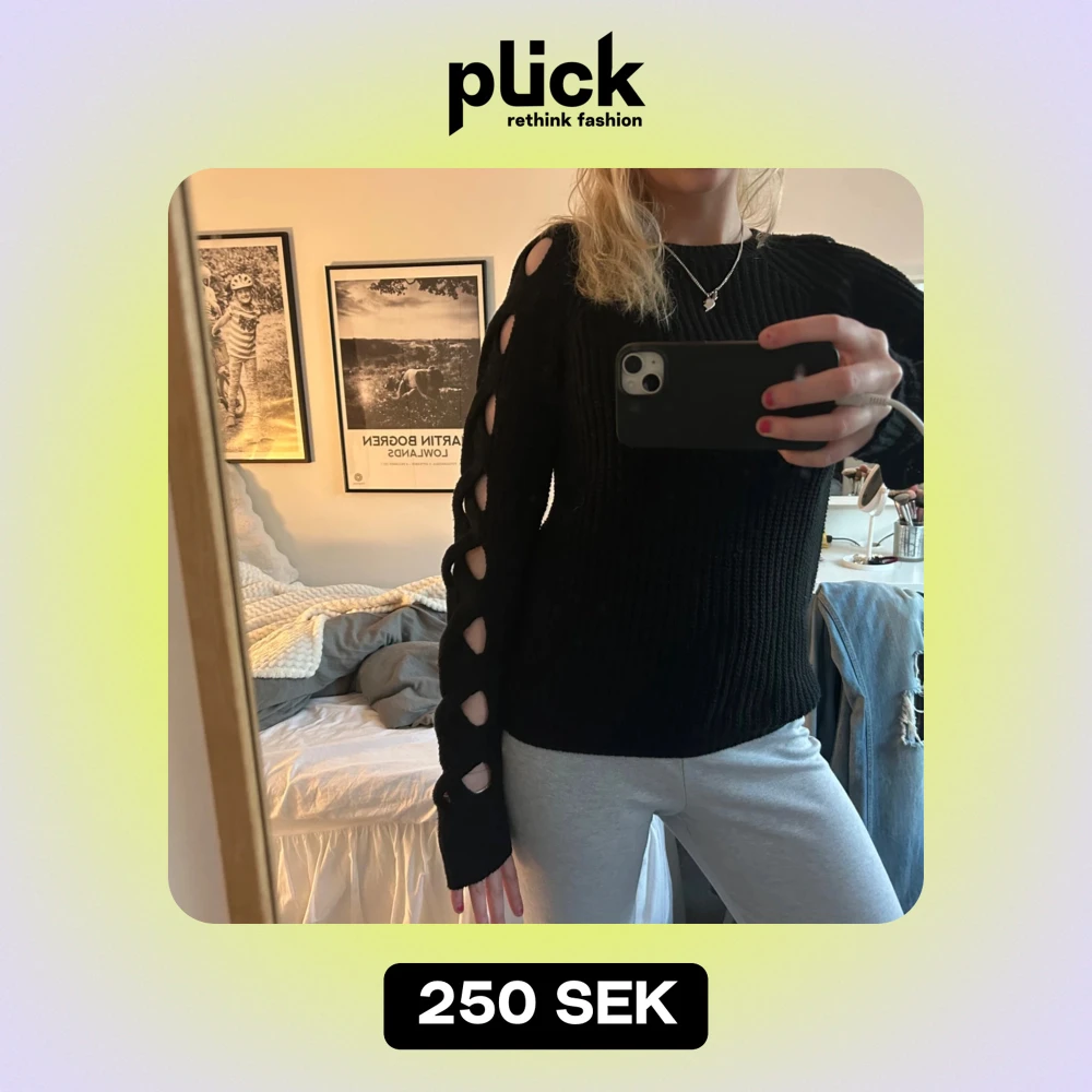 svart stickad tröja med cut out längs ärmarna, så cool!