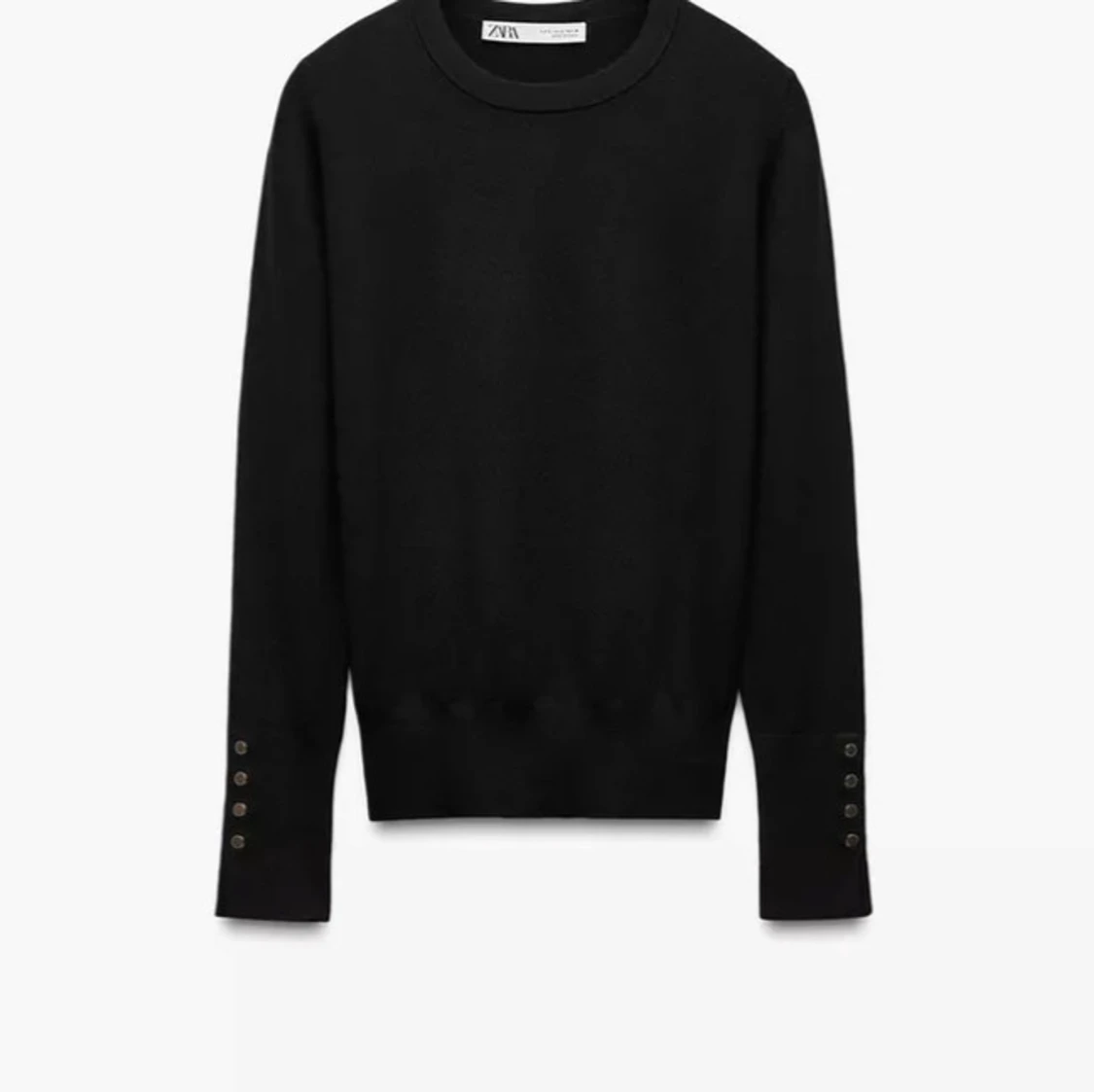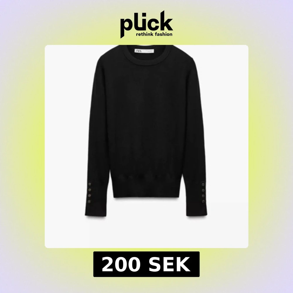 Snygg svart stickad tröja med långa ärmar och dekorativa knappar längs ärmarna. säljer då den aldrig används!❤️