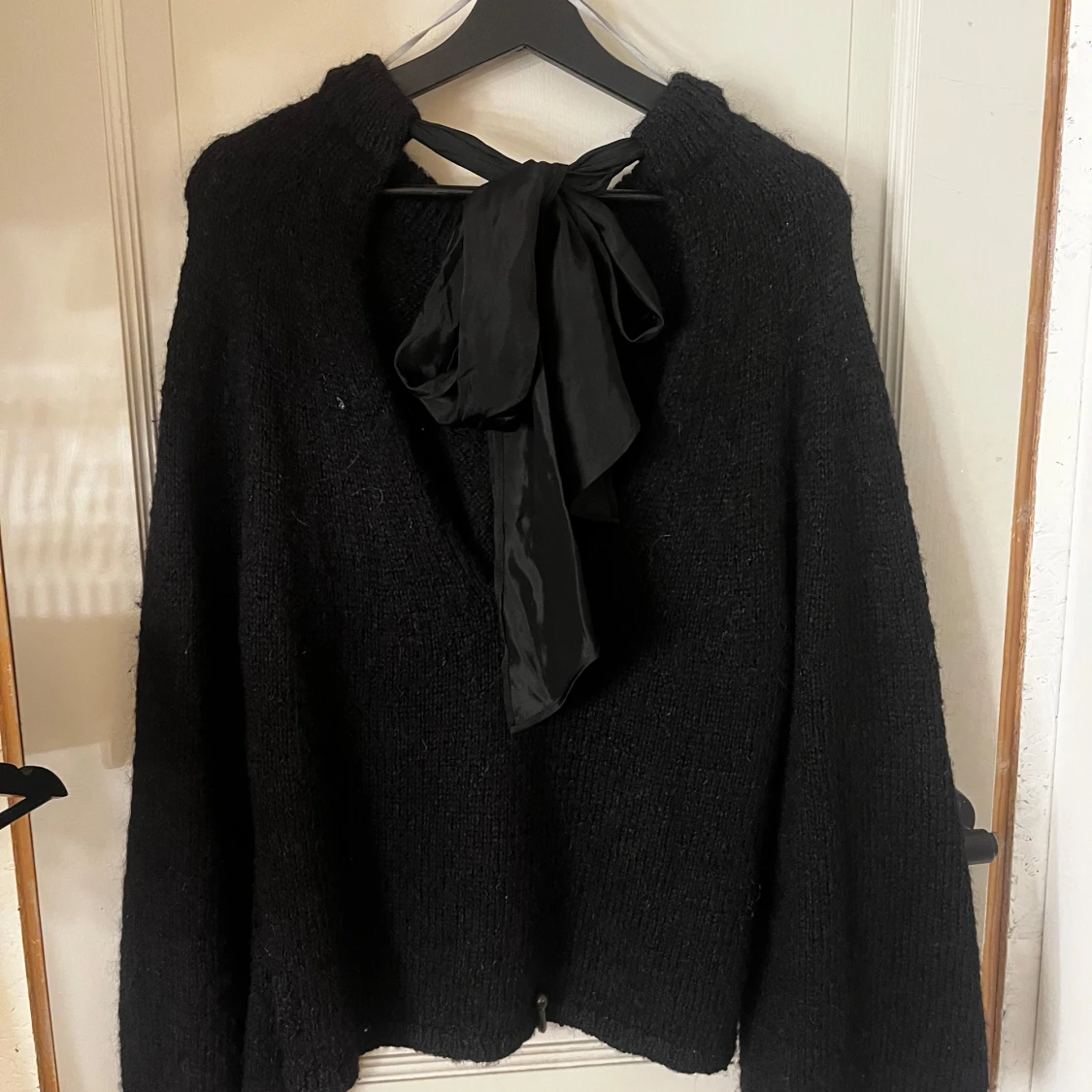 Svart stickad tröja med rosett i ryggen