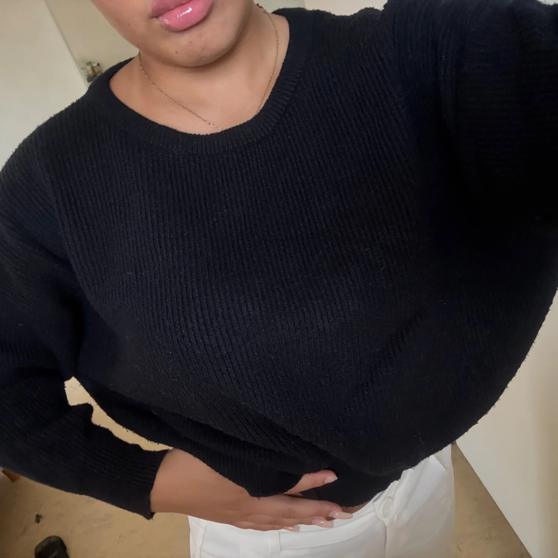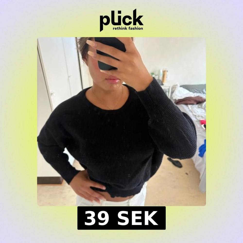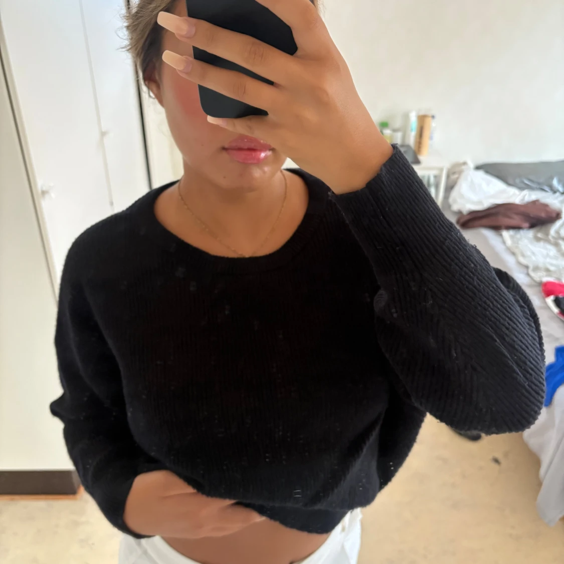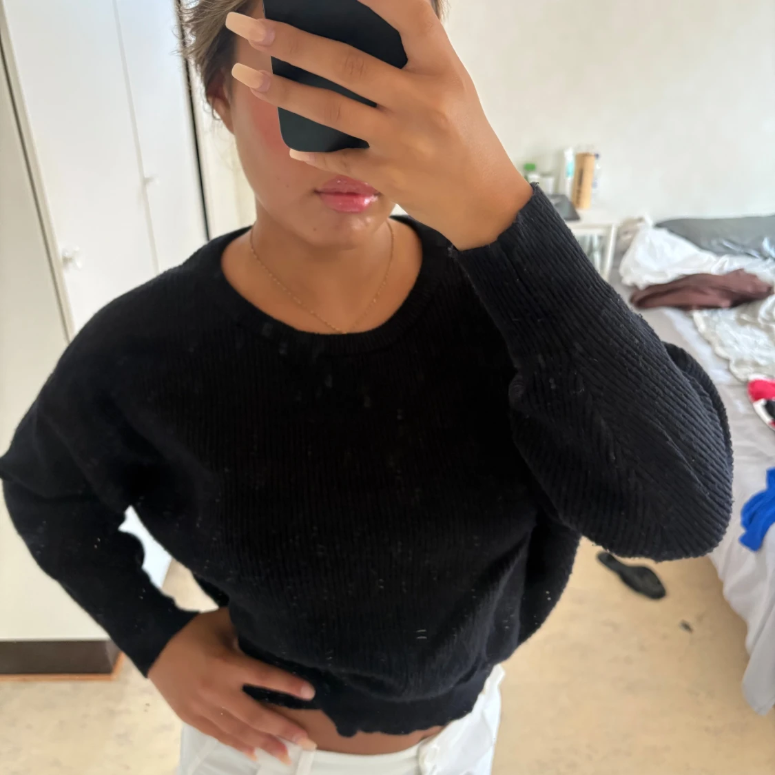En svart stickad tröja med rund halsringning och långa ärmar. Tröjan har en klassisk, enkel design och är lite loose i passformen. Perfekt att slänga på sig när det är kyligt ute. Passar till allt och är superenkel att styla.