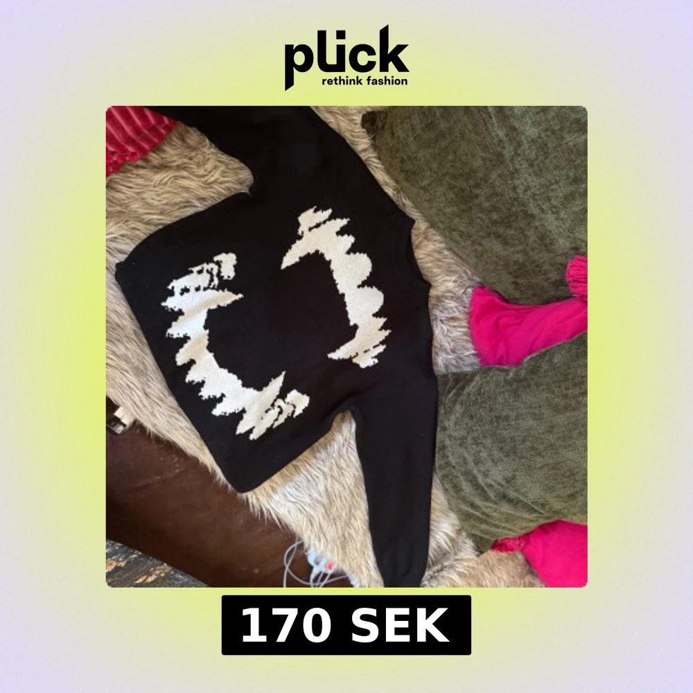 Cool svart stickad tröja med lång ärm och stor vit grafisk design framtill. Tröjan har en klassisk passform och är perfekt för dig som gillar unika prints och streetstyle. Passar lika bra till jeans som till kjol.