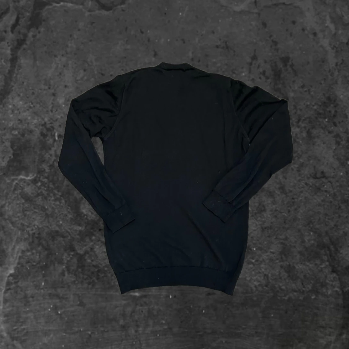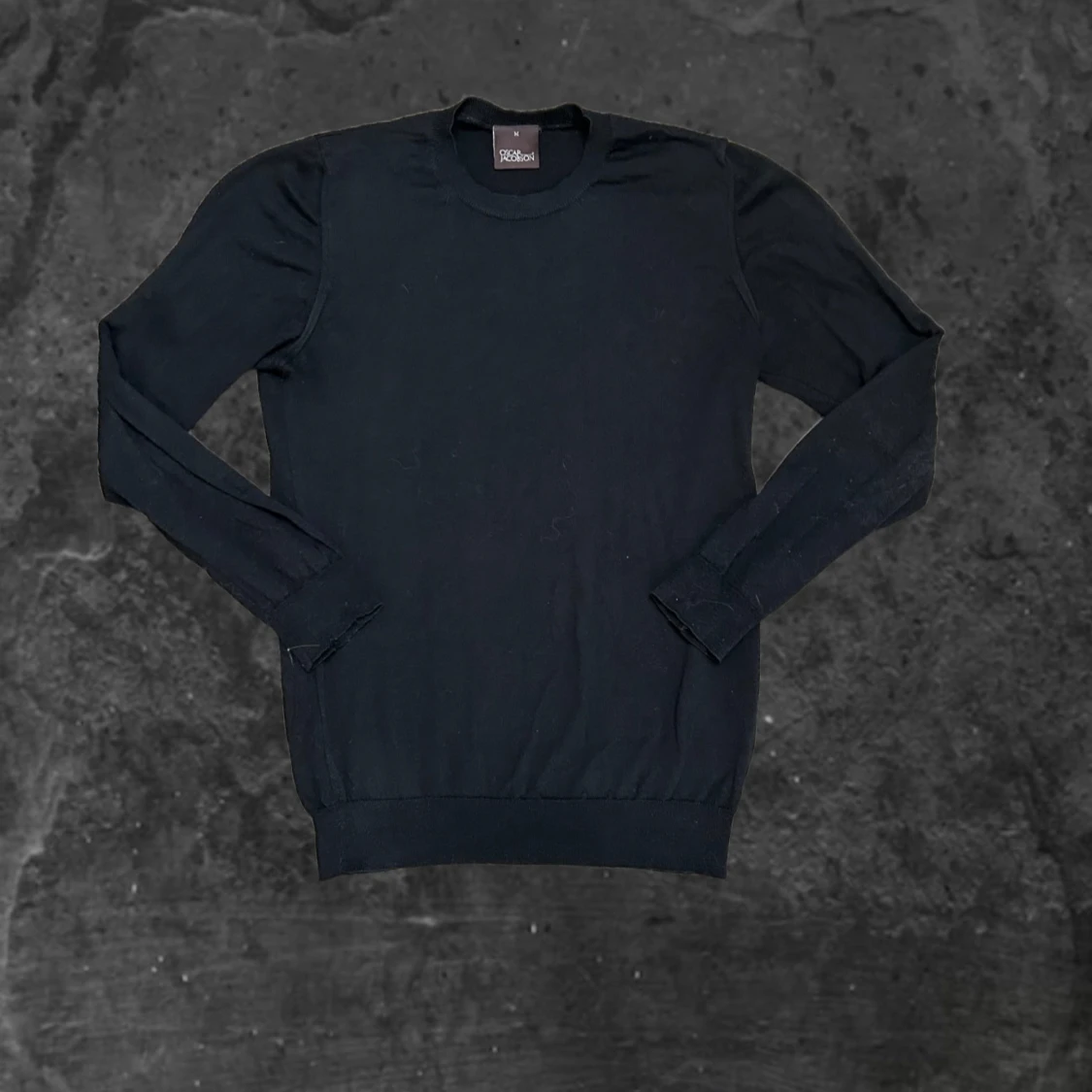 En klassisk svart stickad tröja från Oscar Jacobson. Tröjan har rund halsringning, ribbade muddar och lång ärm. Perfekt för lager-på-lager och enkel att matcha med olika outfits.
