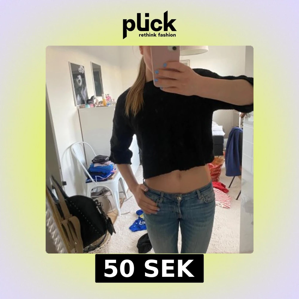 Säljer en svart stickad tröja med trekvarts ärmar. Tröjan har en enkel och stilren design, perfekt att matcha med jeans eller kjol. Mjuk och skön att bära.