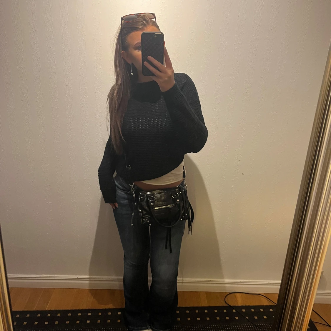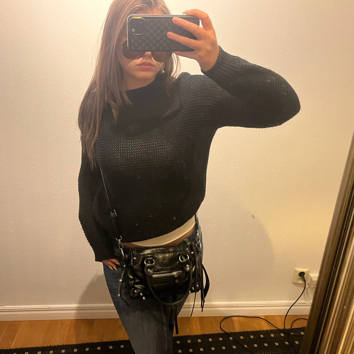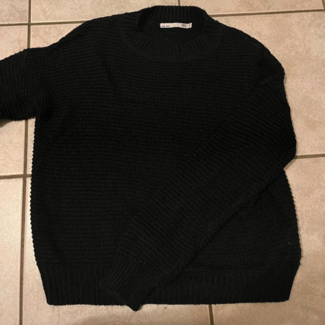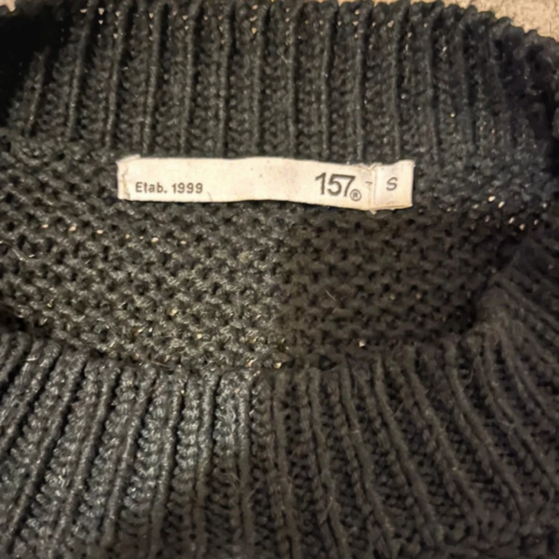Säljer en svart stickad tröja från 157. Tröjan har en klassisk design med rund hals och långa ärmar. Perfekt för kyligare dagar. Skriv vid frågor💗