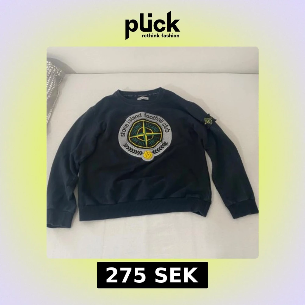 Svart sweatshirt från Stone Island med stort broderat logomärke på bröstet och klassisk patch på vänster ärm. Tröjan har rund hals, ribbade muddar och är tillverkad i mjuk bomull. Perfekt för dig som gillar streetwear och sportig stil. (Barnstorlek)