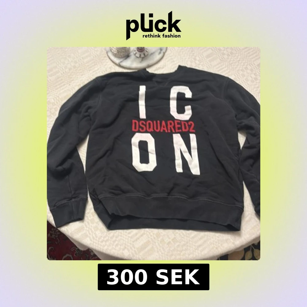 Svart sweatshirt från Dsquared2 i storlek L med stor vit och röd 'ICON' print på bröstet. Klassisk rund halsringning och långa ärmar. Mjuk insida och ribbade muddar vid ärmslut och nederkant. Perfekt statement-plagg för dig som gillar streetstyle.