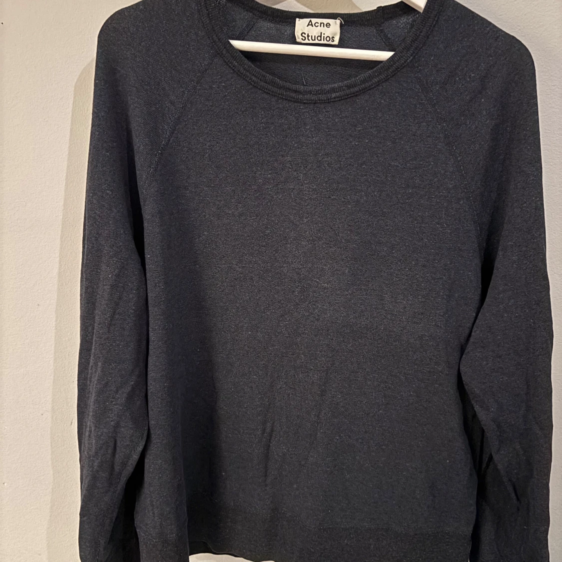 En väldigt fin Acne Studios tröja med mycket bra kvalité. Är använd en del men syns knappt pga materialet. Den är i storlek m och har en relaxed fit och passar till vem som helst.