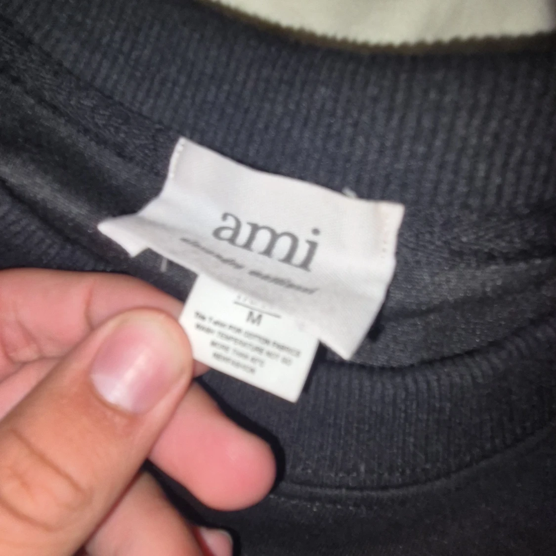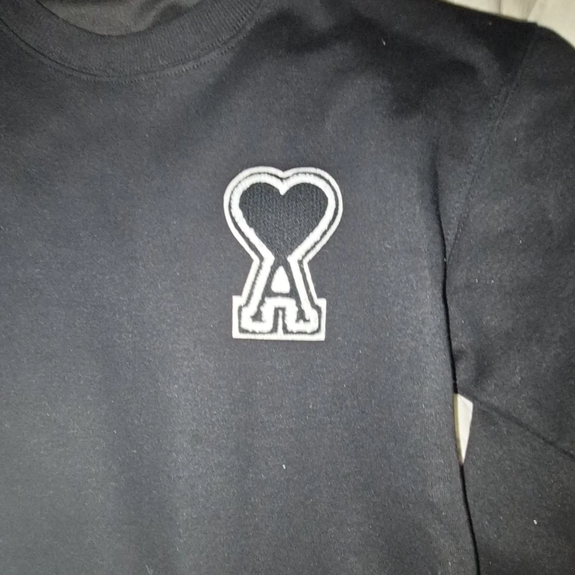 Svart sweatshirt från Ami i bomull med ikonisk vit broderad hjärtlogo på bröstet. Klassisk rund halsringning och långa ärmar. Perfekt för en clean och stilren look, passar till jeans eller sweatpants. Sitter som s