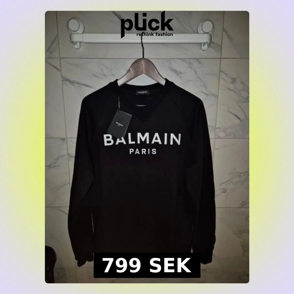Svart sweatshirt från Balmain Paris med vit logotyp på bröstet. Tröjan har rund halsringning, ribbade muddar och är långärmad. Tillverkad i Italien och gjord av mjuk bomull. Perfekt för dig som gillar stilrena designer och exklusiva märken.