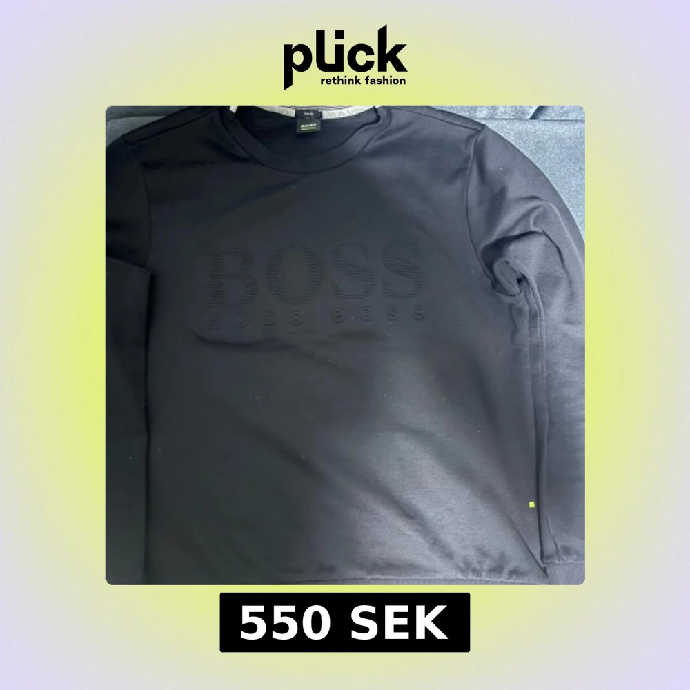 Säljer en svart sweatshirt från BOSS med diskret logotyp i samma färg på bröstet. Tröjan har rund halsringning och långa ärmar. Passformen är slim fit och materialet känns mjukt och bekvämt.