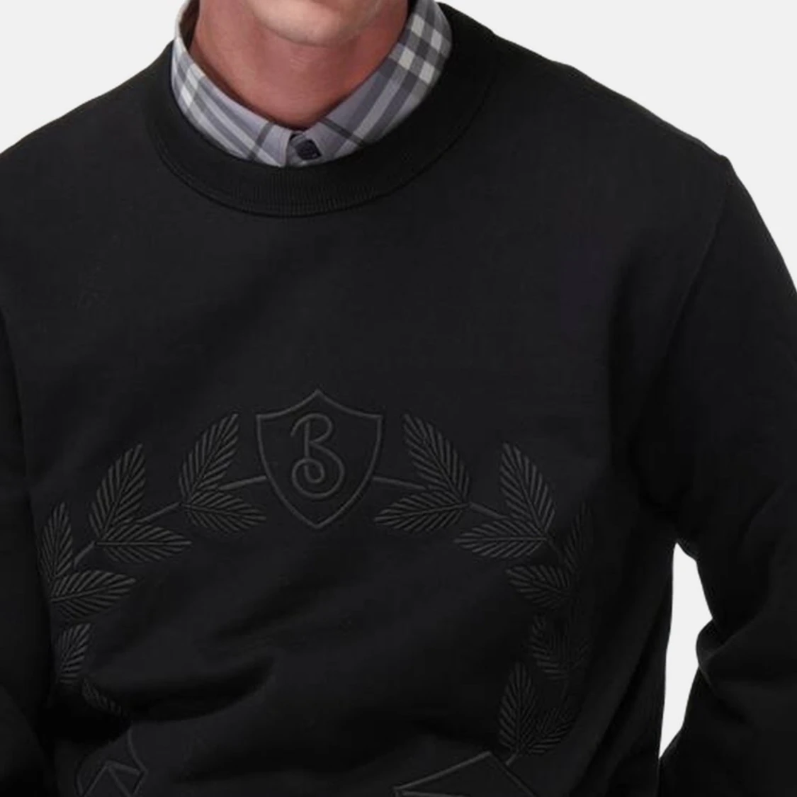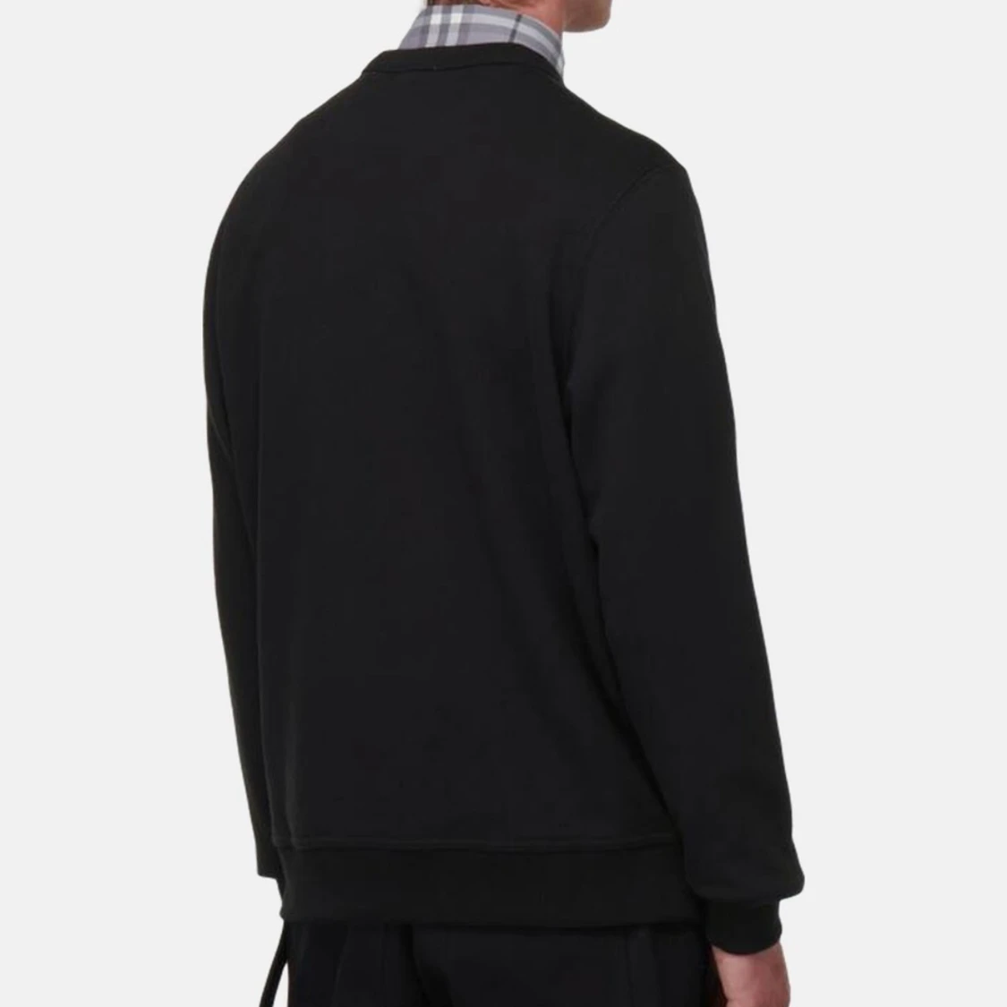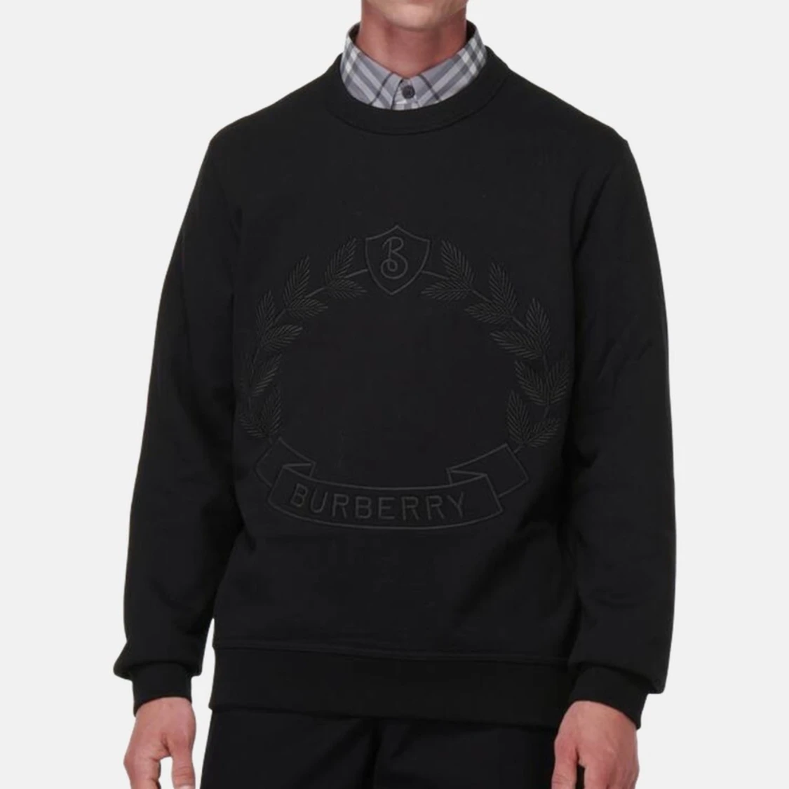 Säljer en stilren svart sweatshirt från Burberry med ett diskret broderat emblem på framsidan. Tröjan har långa ärmar och en klassisk rund halsringning. Perfekt för både vardag och lite finare tillfällen. Superbekväm och lätt att matcha med allt!