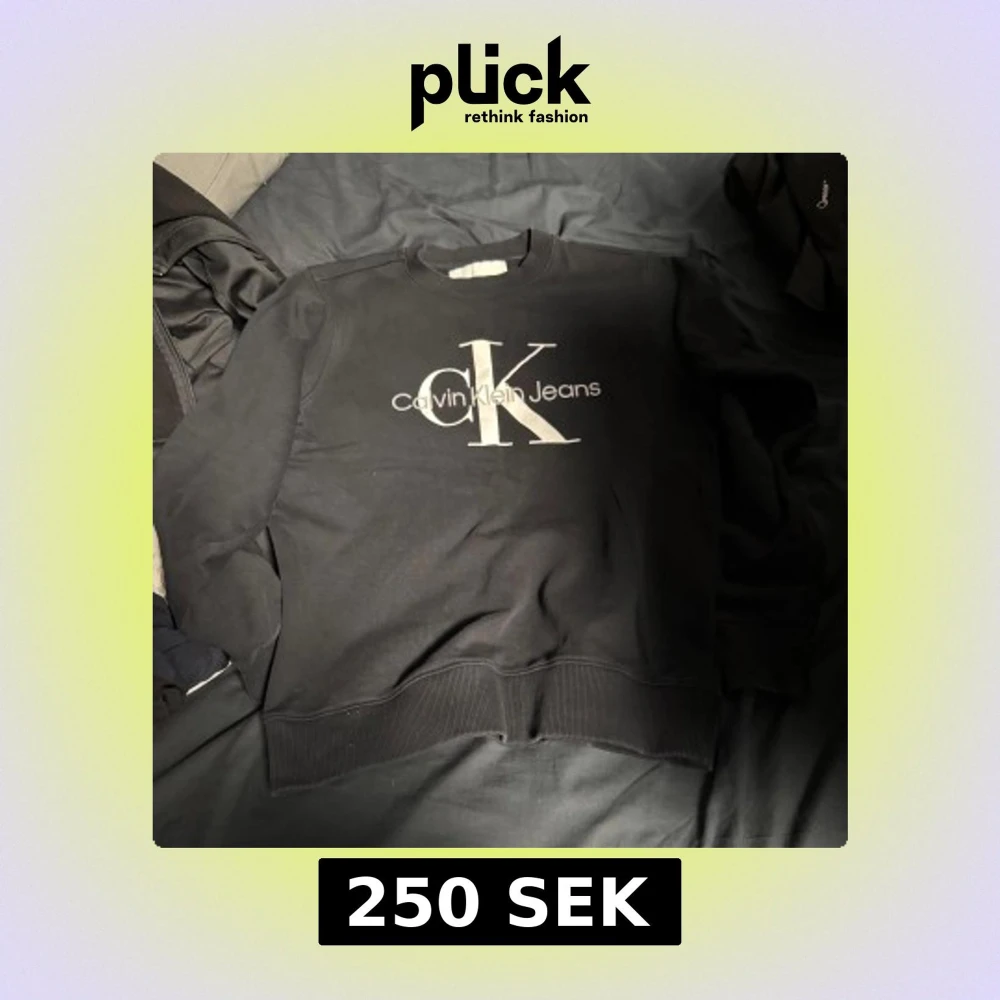 Säljer en stilren svart sweatshirt från Calvin Klein Jeans med deras ikoniska logga i vitt på framsidan. Tröjan har långa ärmar och ribbade muddar vid ärmslut och nederkant. Perfekt för en avslappnad look.