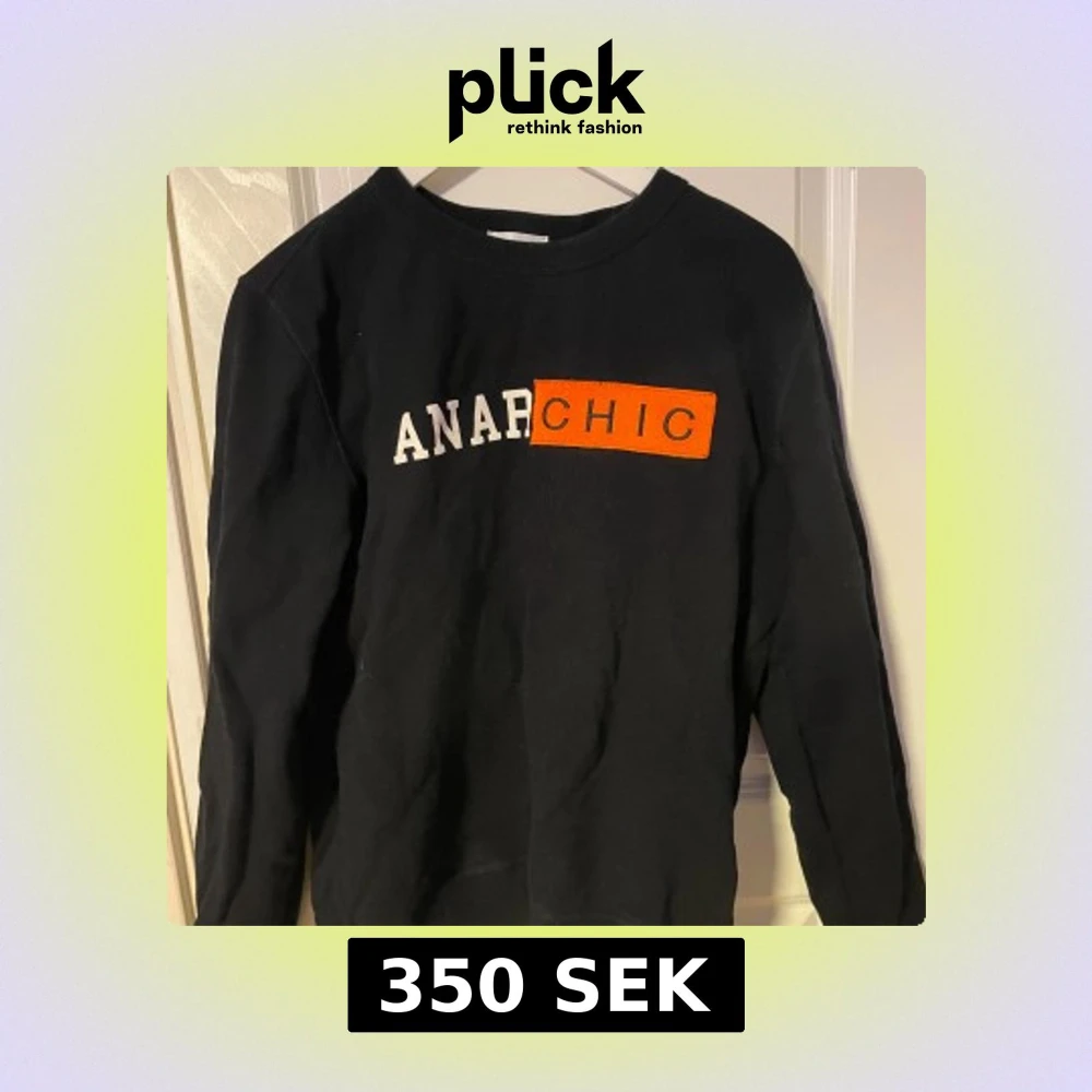 Cool svart sweatshirt från Dondup i storlek L sitter mer som M. Dem har ett trycket där det står ANARCHIC. Hör av er om ni har några frågor eller funderingar prisförslag kan tas emot