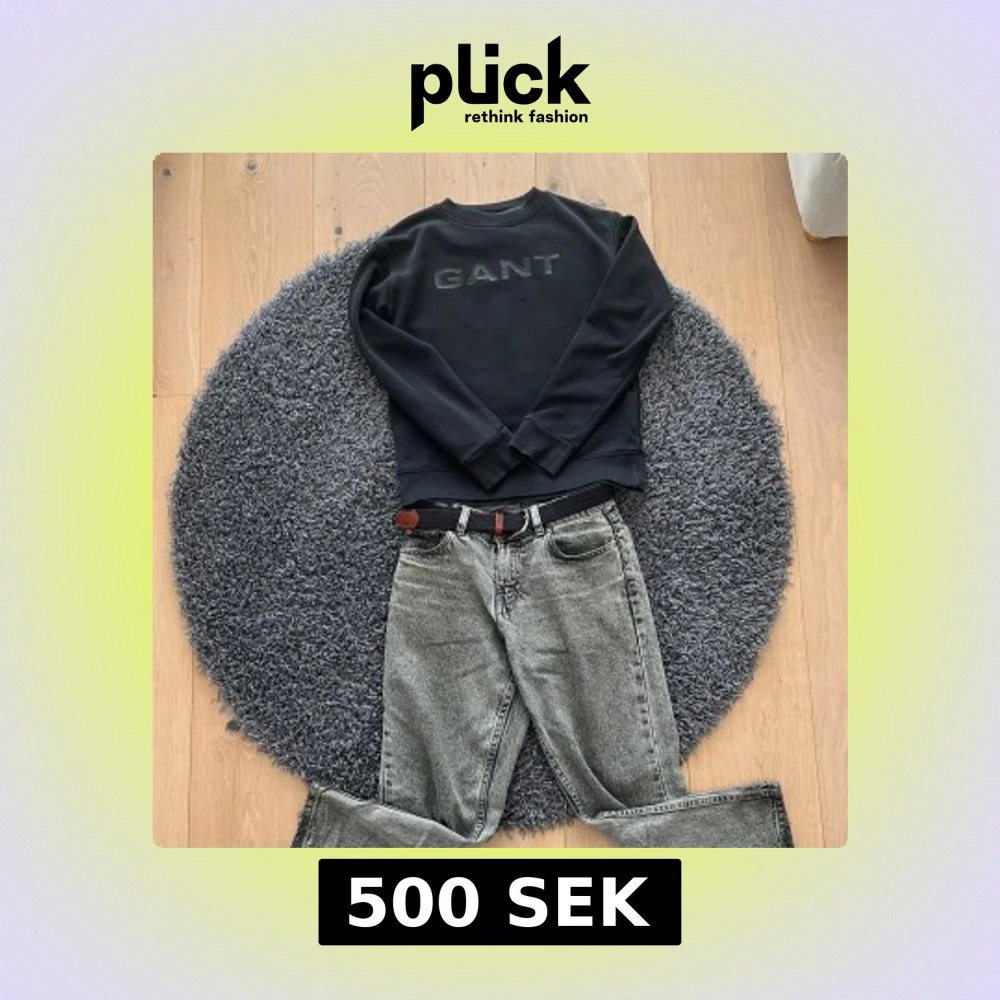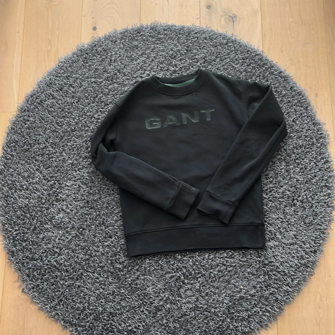 Säljer en stilren svart sweatshirt från GANT med deras logga diskret broderad på bröstet. Tröjan har långa ärmar och ribbade muddar vid ärmslut och nederkant. Perfekt för en avslappnad look.
