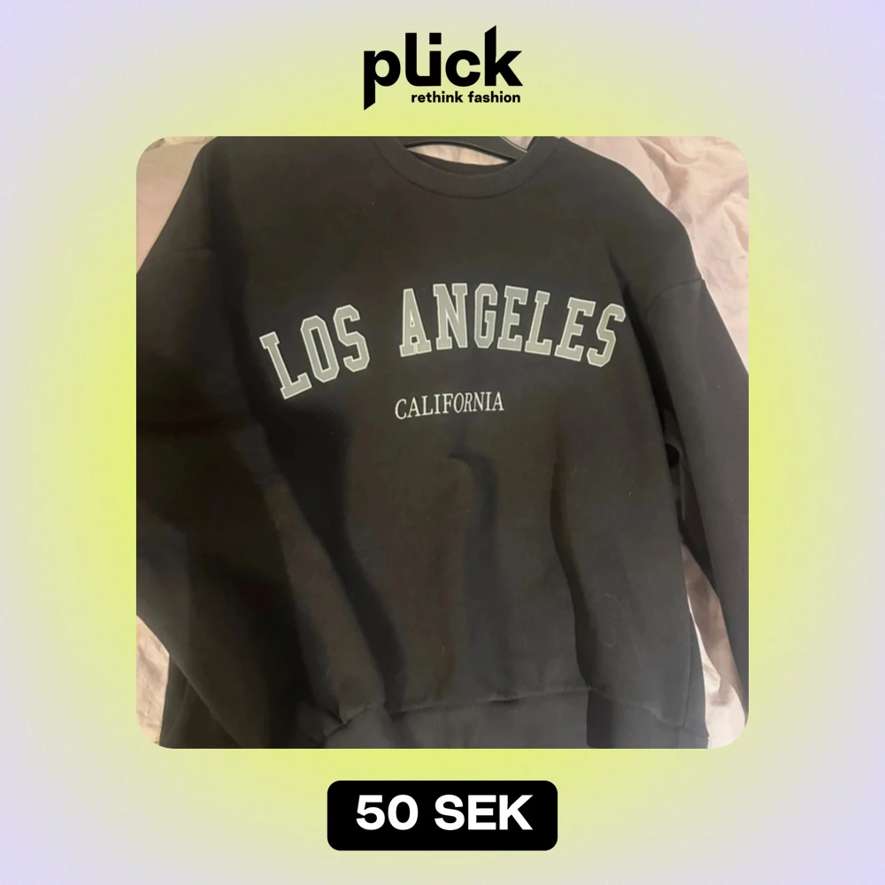 Säljer en svart sweatshirt från Gina Tricot med texten 'Los Angeles California' tryckt på framsidan.