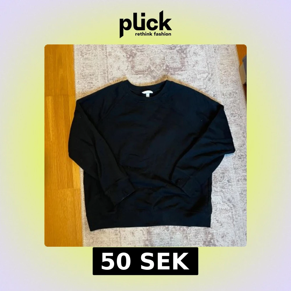 Säljer en klassisk svart sweatshirt från H&M. Tröjan har en rund halsringning och långa ärmar med ribbade muddar. Perfekt för en avslappnad stil.