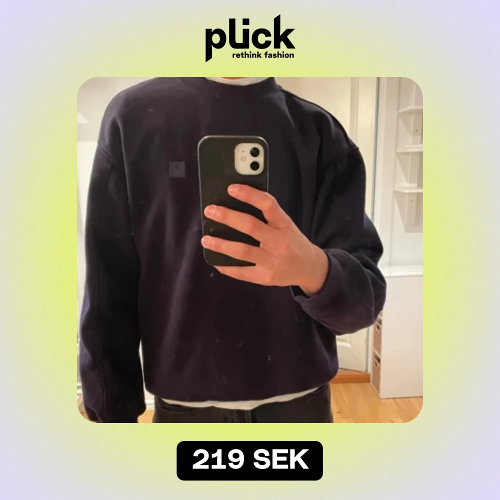 Säljer en marinblå sweatshirt från H&M i storlek S. Den har en relaxed fit och är superbekväm. Perfekt för både chill dagar hemma och när du är ute på stan. Tröjan har långa ärmar och en enkel design med en liten logga på bröstet. Knappt använd!