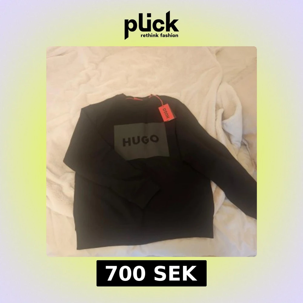 Svart sweatshirt från Hugo med stor logga framtill i grått. Klassisk rund halsringning och långa ärmar. Perfekt för en clean och stilren look. Mjuk bomullskänsla och ribbade muddar vid ärmslut och nederkant. Helt ny med lapp kvar!