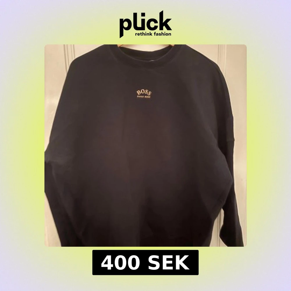 Svart sweatshirt från Hugo Boss med liten logga framtill och stor logotyp i gult på ryggen. Klassisk rund halsringning och långa ärmar. Perfekt för en stilren och avslappnad look.