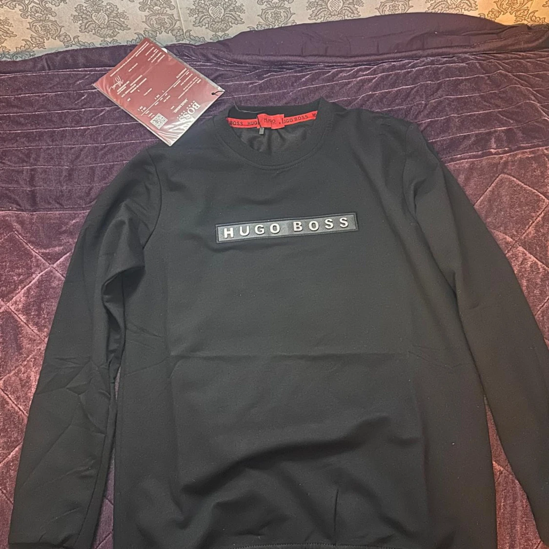 Svart långärmad sweatshirt från Hugo Boss med klassisk rund hals och tydlig logotyp framtill. Tröjan har en stilren design och är tillverkad i mjuk bomullsblandning som känns skön mot huden. Perfekt för dig som gillar en clean och exklusiv look.
