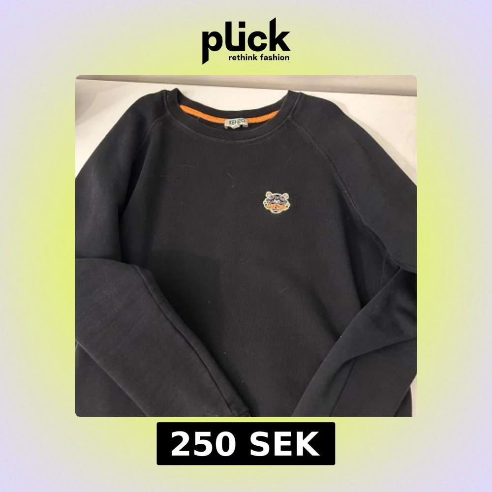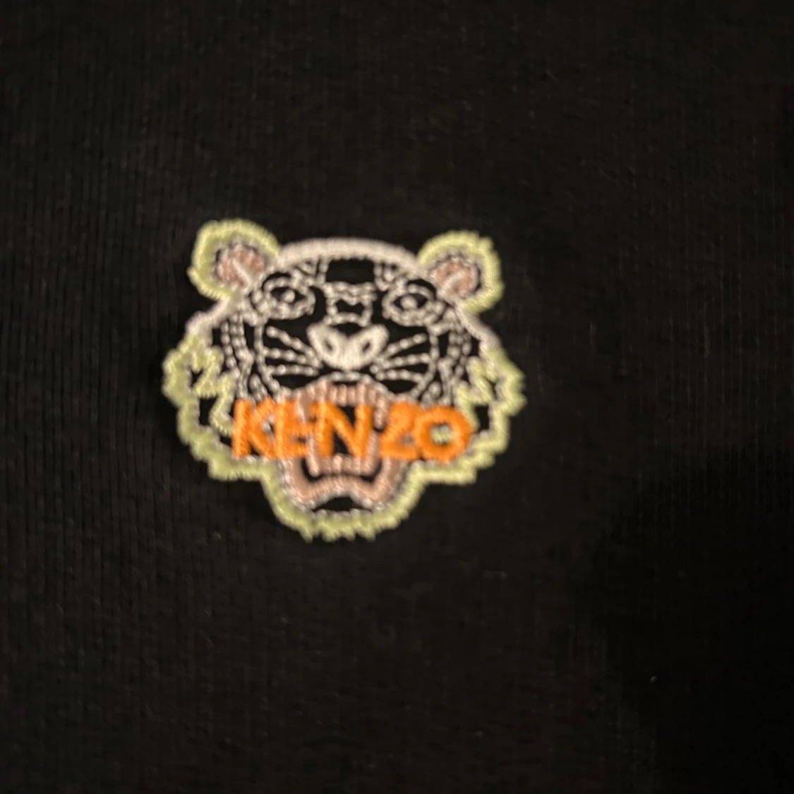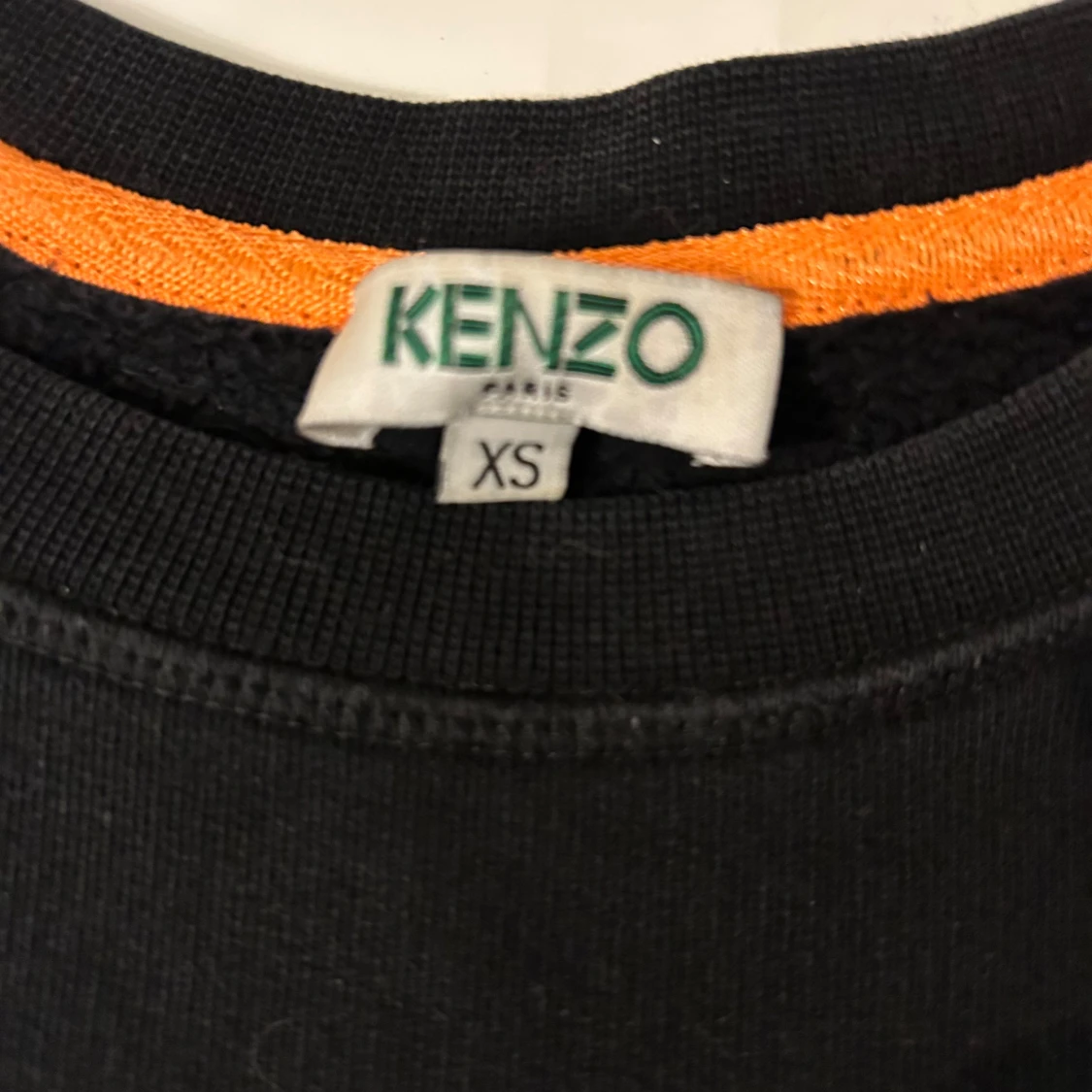 Svart sweatshirt från Kenzo i bomull med klassisk rund hals och broderad tigerlogga på bröstet. Snygg orange detalj på insidan av kragen. Perfekt för dig som gillar streetstyle och vill ha något som sticker ut.