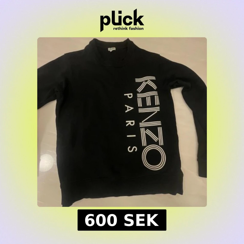 Svart sweatshirt från Kenzo Paris i storlek L med stort vitt tryck längs framsidan. Tröjan har långärmad design, rund hals och ribbade muddar. Materialet är mjukt och känns som bomull, perfekt för en chill och stilren look.