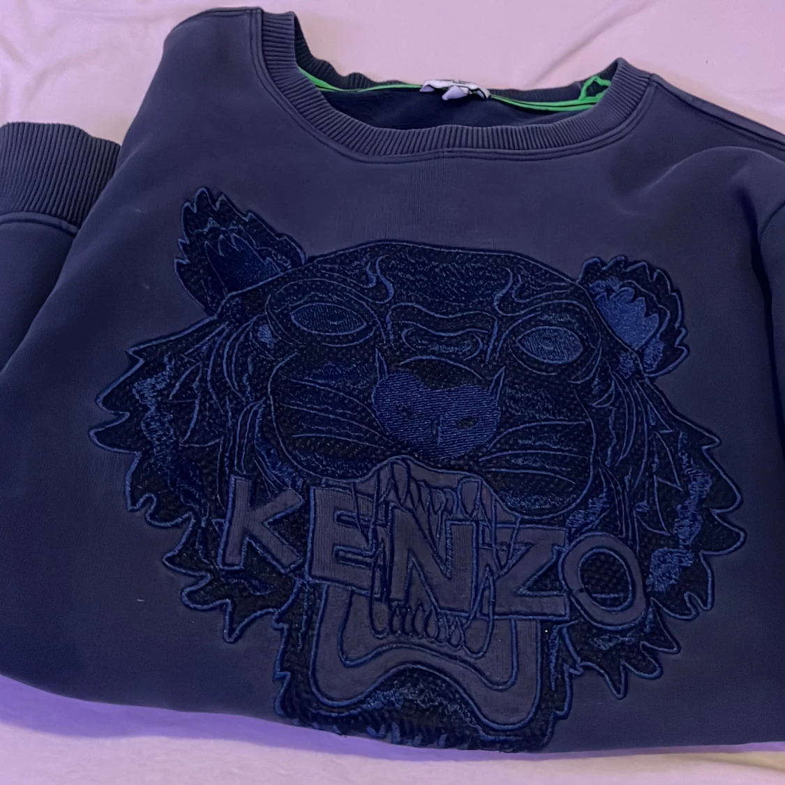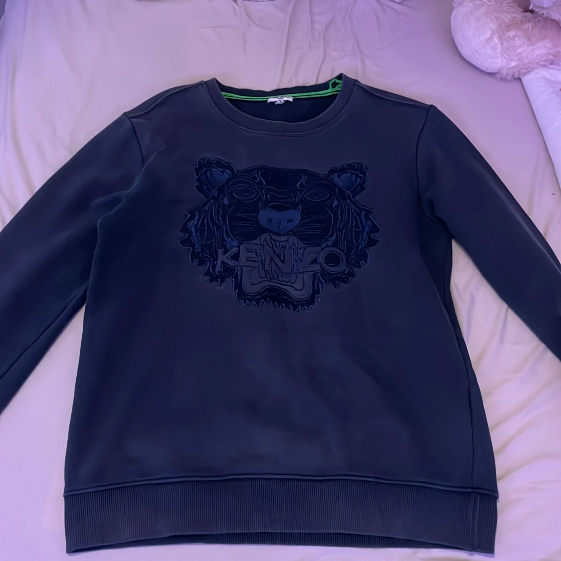 Snygg svart sweatshirt från Kenzo med ett coolt tigerbroderi på framsidan. Tröjan har långa ärmar och ribbade muddar vid ärmslut och nederkant. Perfekt för en stilren look!