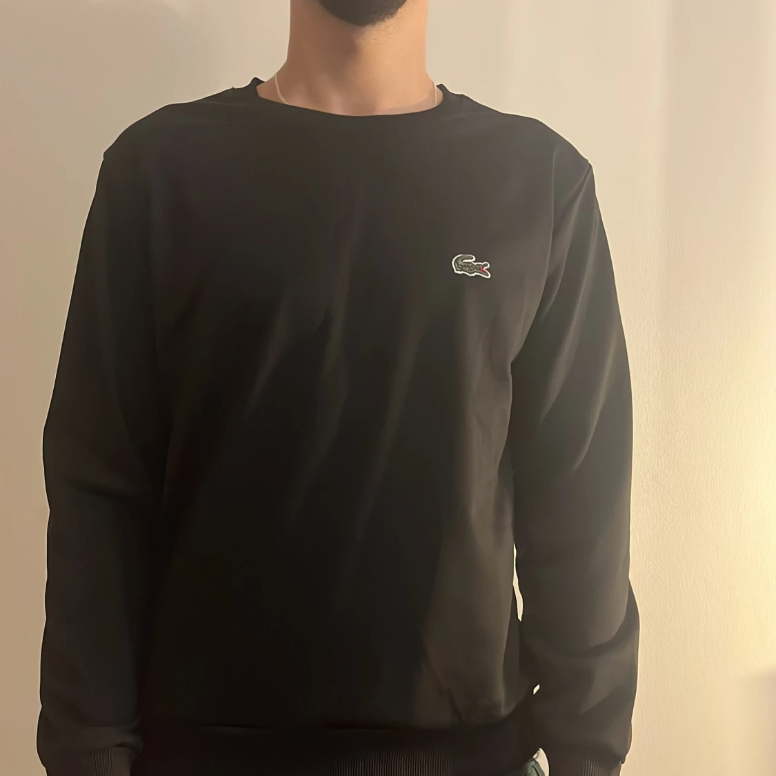 Svart sweatshirt från Lacoste med klassisk rund hals och den ikoniska krokodilloggan broderad på bröstet. Tröjan har lång ärm, ribbade muddar och en clean, stilren look. Regular fit och tillverkad i mjuk bomullsmix som är skön att bära.
