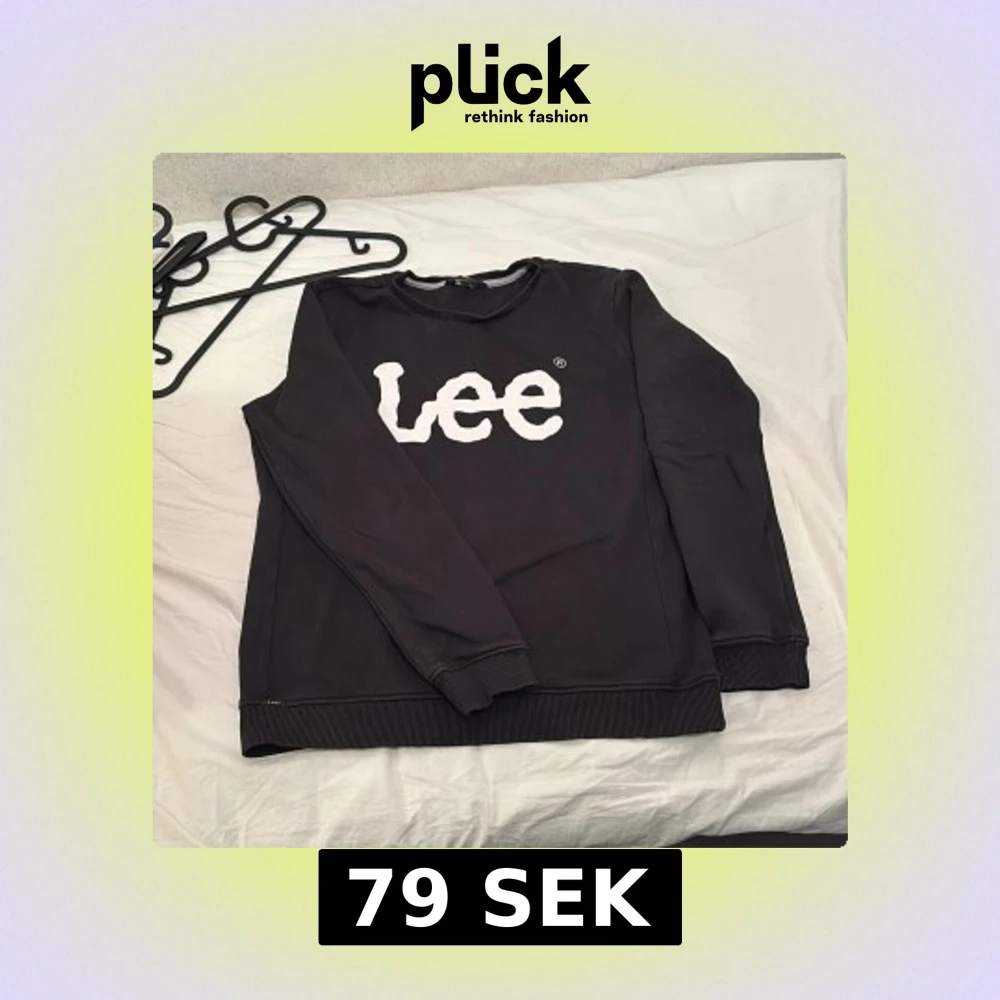 Säljer en svart sweatshirt från Lee med stort vitt tryck på bröstet. Tröjan har rund halsringning, långa ärmar och ribbade muddar vid ärmslut och nederkant. Perfekt för en avslappnad stil.
