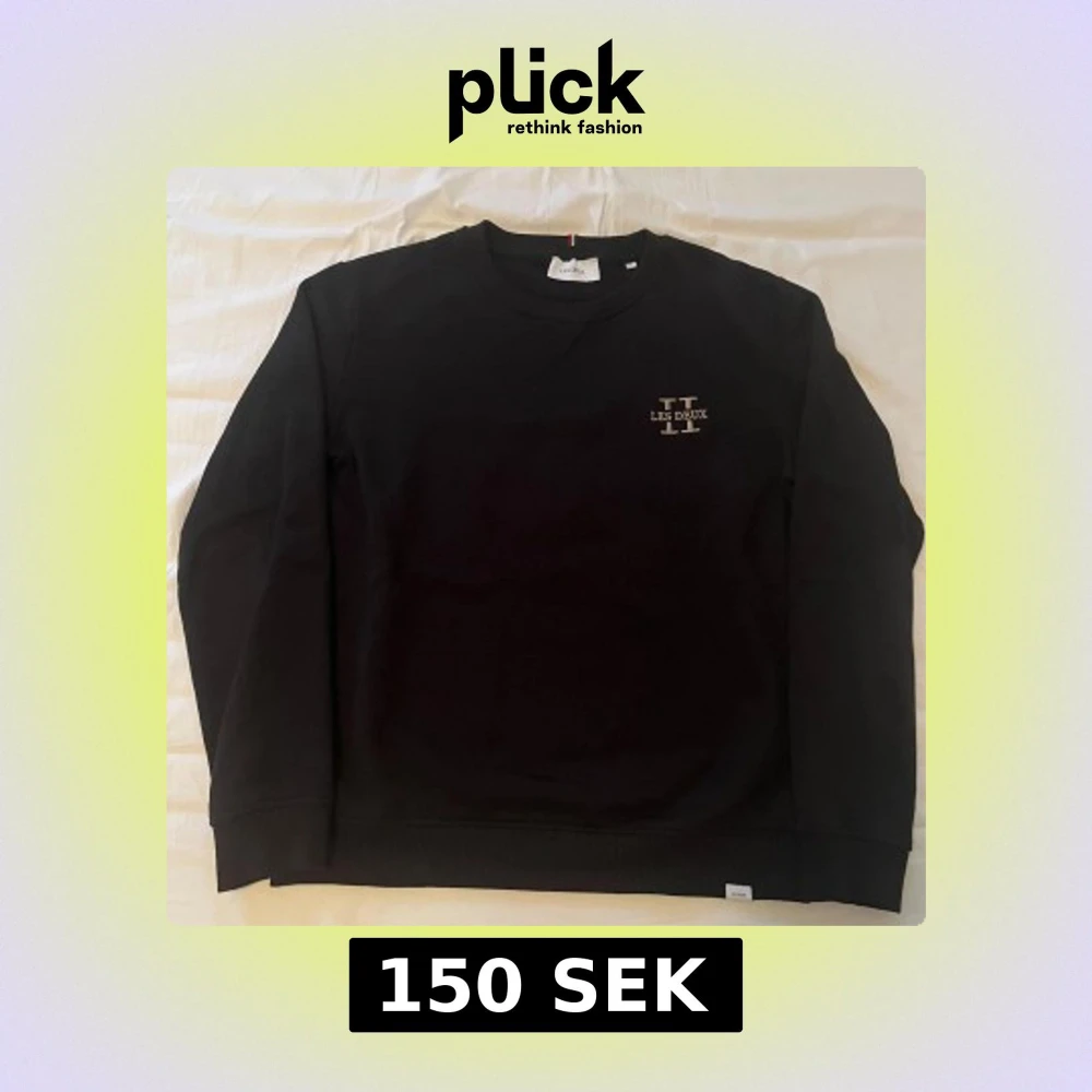 Snygg svart sweatshirt från Les Deux med deras logga på bröstet. Tröjan har långa ärmar och en rund halsringning med ribbade kanter. Den är i super fint skick helt utan skador och defekter