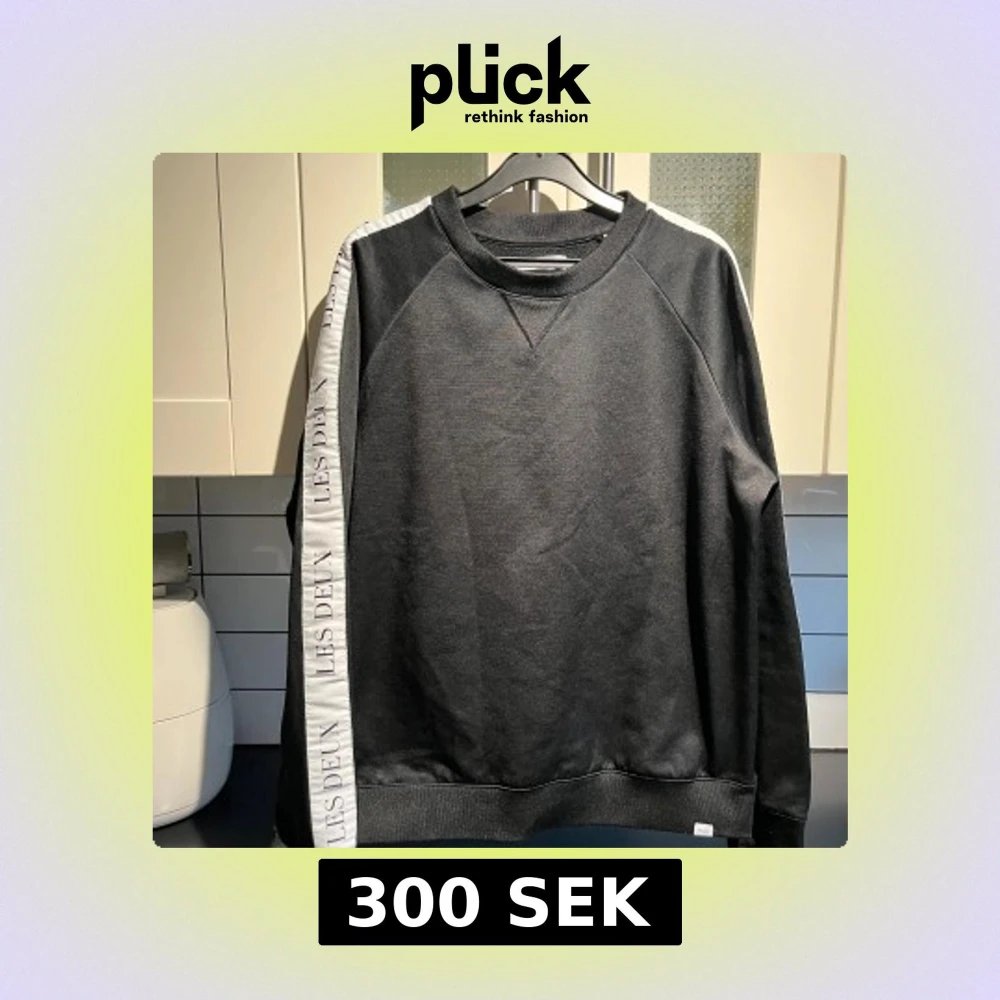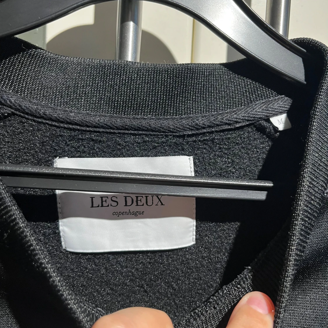Svart sweatshirt från Les Deux med vit panel och logga längs ena ärmen. Klassisk rund halsringning och ribbade muddar. Snygg och enkel design som passar perfekt till jeans eller joggers.
