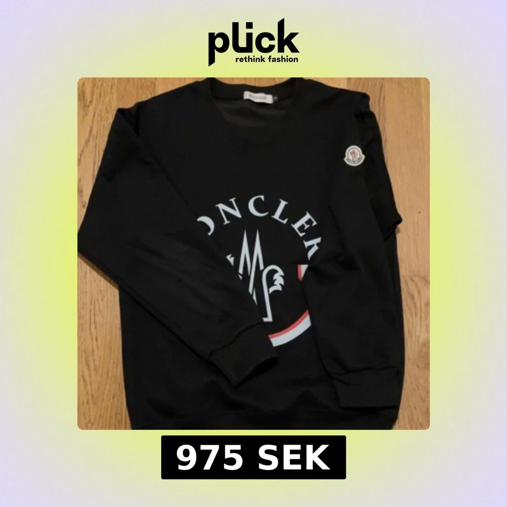Säljer en stilren svart sweatshirt från Moncler med deras ikoniska logga tryckt på framsidan. Tröjan har långa ärmar och en rund halsringning. Perfekt för en casual look. Säljer då den inte kommer till användning. Den är även i mycket bra skick då den använts sparsamt. Självklart äkta! Skriv vid frågor eller funderingar😊