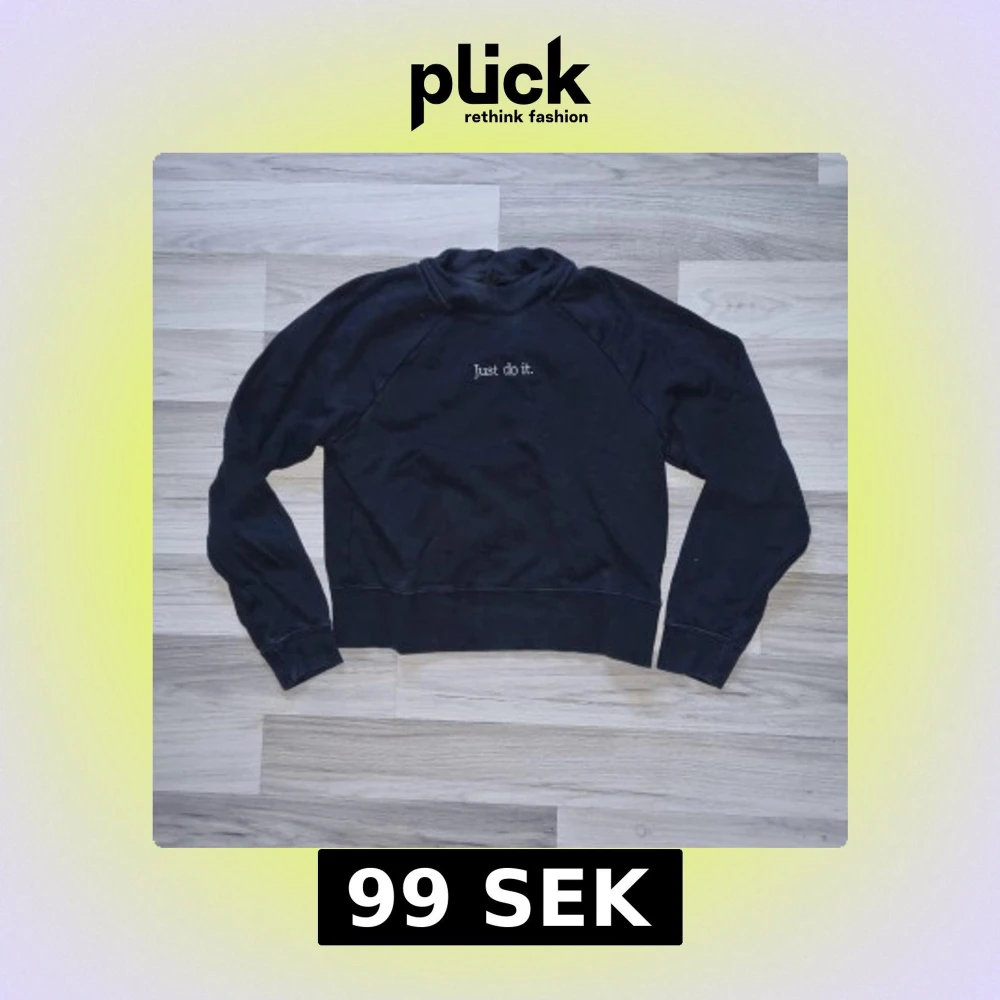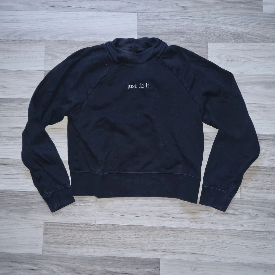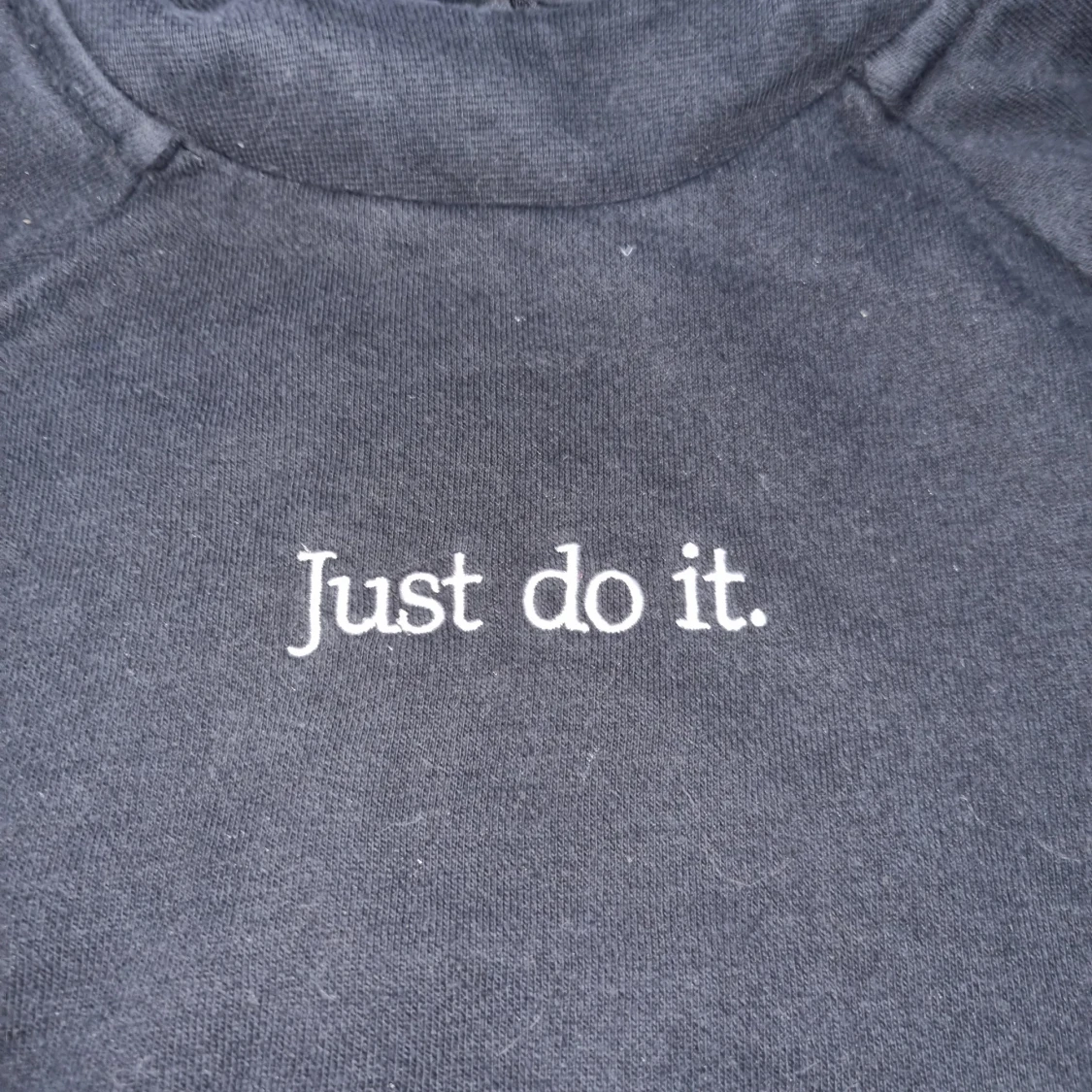 Säljer en svart sweatshirt från Nike med texten 'Just do it' broderad på framsidan. Tröjan har långa ärmar och en klassisk rund halsringning. Perfekt för en avslappnad stil eller träning.
