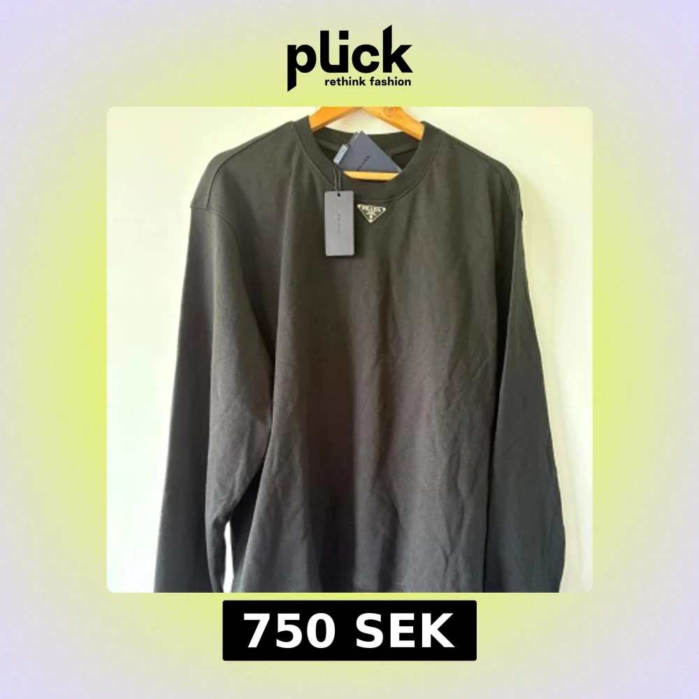 Svart sweatshirt från Prada med klassisk rund halsringning och ikonisk metallogo framtill. Tröjan är i bomull och har långa ärmar samt ribbade muddar vid ärmslut och nederkant. Enkel och stilren design som lyfter din outfit.