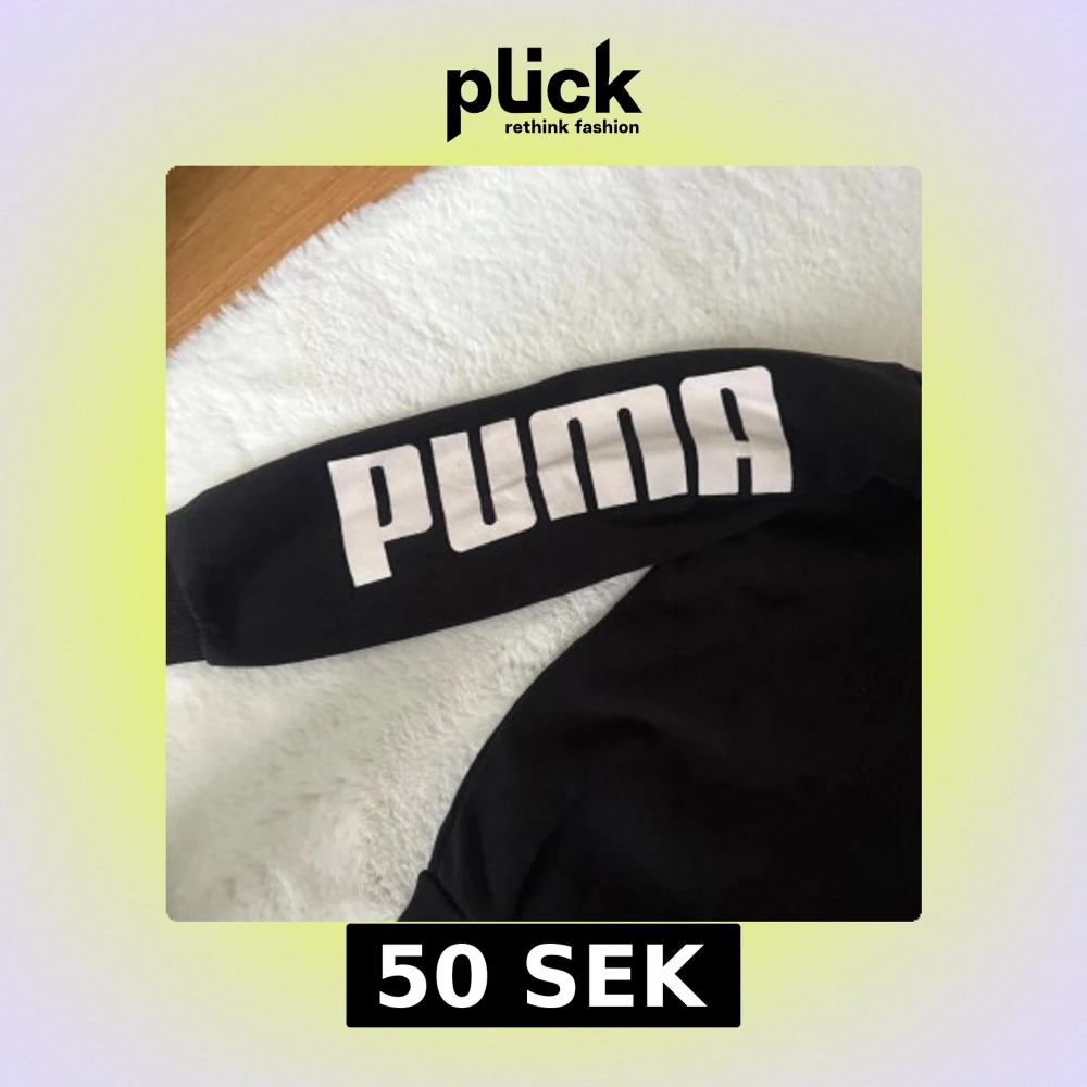 Svart sweatshirt från Puma med klassisk logga på bröstet och stora PUMA-tryck på båda ärmarna, varav ena är med vita prickar. Tröjan har rund hals, ribbade muddar och är i mjuk bomullsmix. Perfekt för en sportig och chill look.